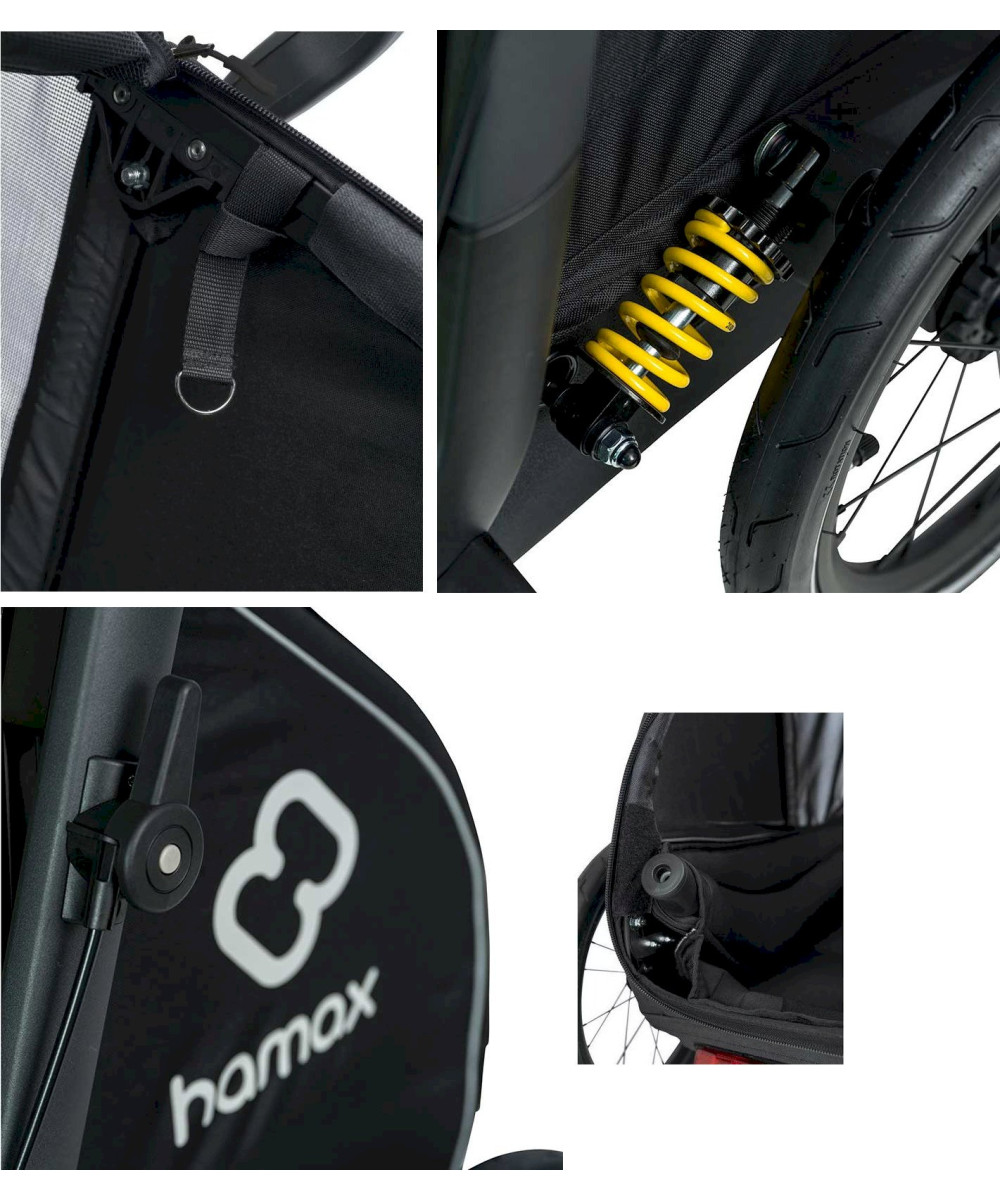 Le mécanisme de pliage innovant permet de plier et de replier la remorque instantanément. La remorque est ainsi facile à emporter ou à ranger de manière compacte lorsqu’elle n’est pas utilisée. - Intérieur confortable et lavable