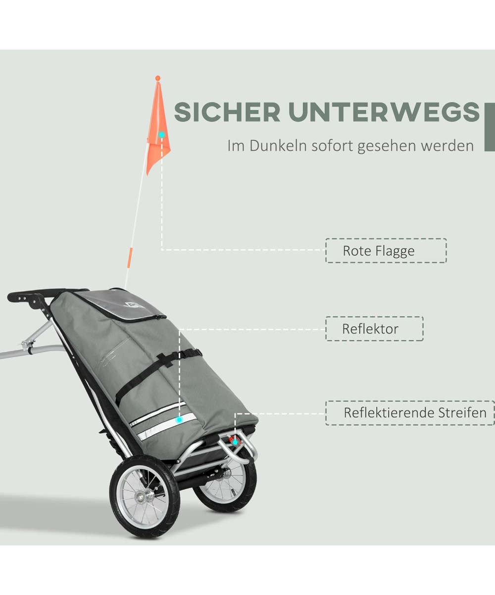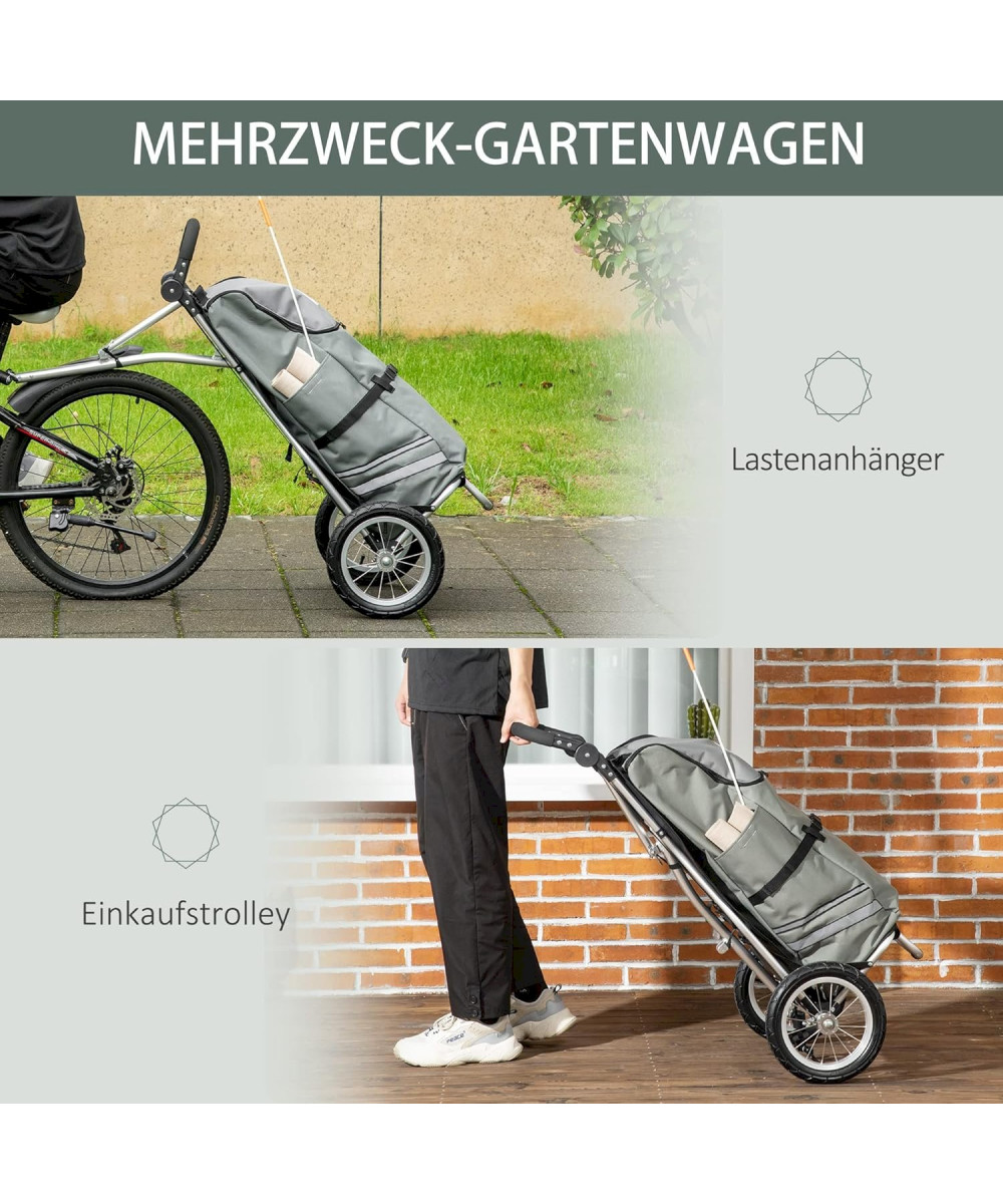 HOMCOM Chariot de Transport 2 en 1 Gris 55L Chariot pour Caddies Remorque de Transport