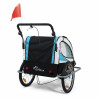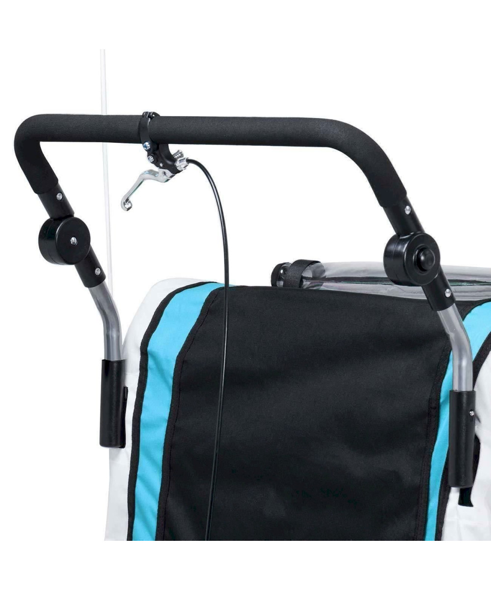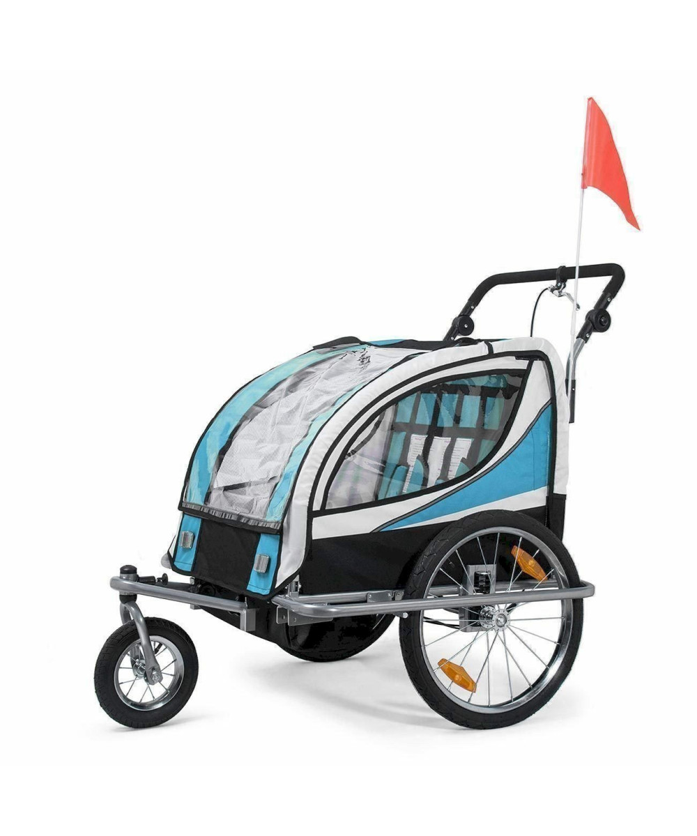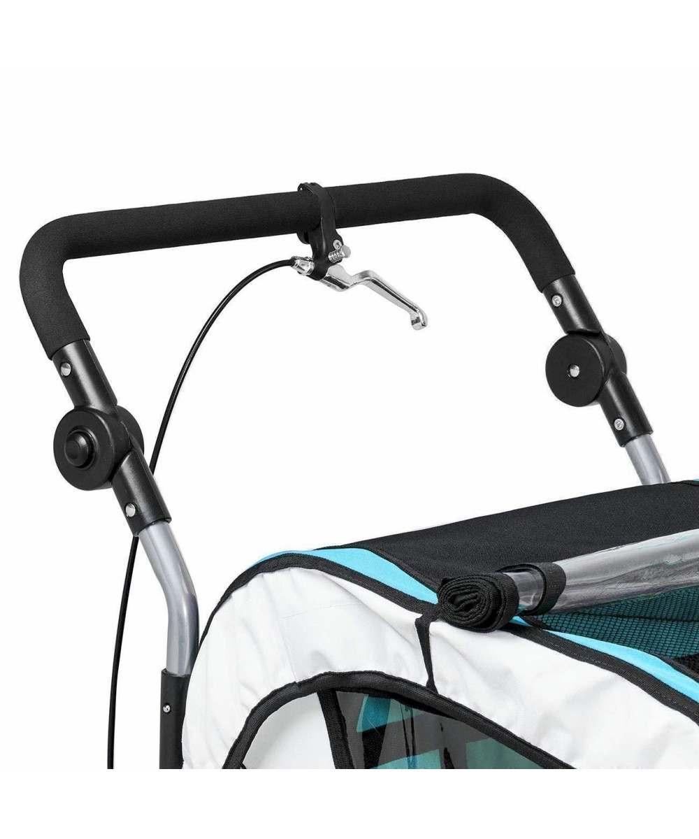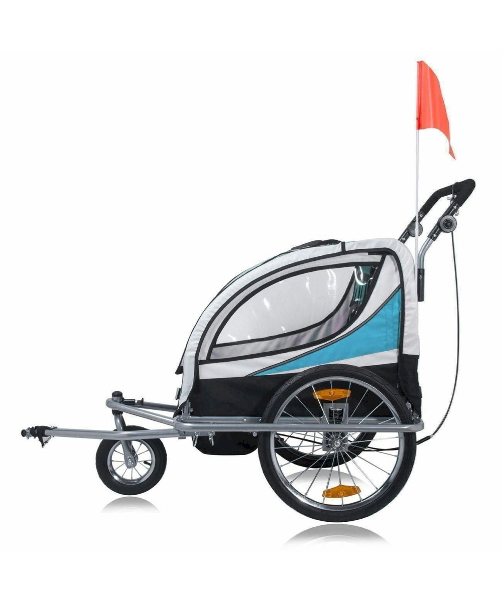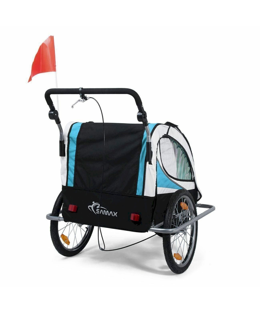 SAMAX Remorque Vélo convertible Jogger 2en1 360° rotatif Pour 2 Enfants Amortisseur Transport Poussette en Bleu - Silver