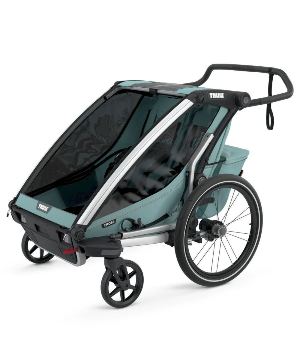 Le chariot Cross 2 offre une conception moderne et élégante . Il est solide et convient particulièrement aux familles actives qui souhaitent faire des activités en plein air en compagnie de leurs enfants .