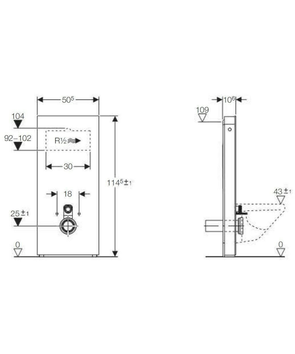 - Pour remplacer les WC muraux avec citerne dissimulée avec une hauteur maximale d’ouverture de service de 109 cm