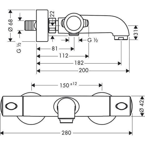 Hansgrohe Mitigeur Thermostatique de Baignoire Ecostat 1001 SL Chrome 13241000