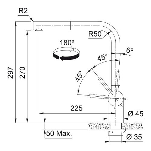 Mode D'utilisation Haute Pression · Saillie 225 Mm · Monocommande · Revêtement Acier Inoxydable · Hauteur 297 Mm