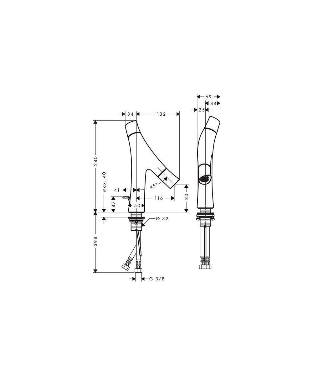 Hansgrohe Axor Starck Organic 12010000 Mitigeur lavabo 280 chromé 2 Griff Armatur 80, chrom, Ablaufgarnitur