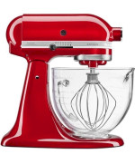 - 4.83 l Schüssel aus Glass, Flachrührer, Knethaken und Schneebesen, Power-Hub
