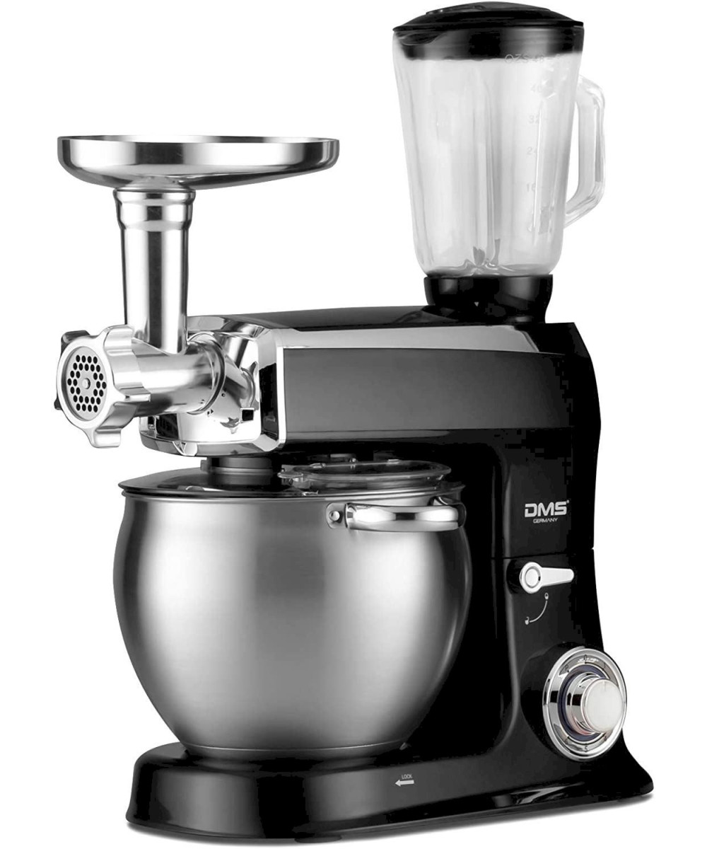Die DMS Küchenmaschine ist perfekt für jeden Koch- und Backliebhaber geeignet. Sie ist mit einer klassischen Knet- und Rührmaschine, einem Fleischwolf aus hochwertigem Edelstahl, sowie einem Mixer aus einem stabilen Glasbehälter ausgestattet. Dieses dreifunktionale Gerät inkl. umfangreichem Zubehör bietet Ihnen schnell und einfach verschiedenste Koch- und Backmöglichkeiten.