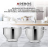 Bouton de contrôle avec 6 réglages de vitesse pour différentes fonctions, y compris le réglage des impulsions. Lors de l'activation de la fonction d'impulsion, les 3 outils d'agitation différents alternent entre un mouvement rapide et lent. Le bouton de contrôle est doté d'un voyant d'alimentation LED bleu. - Avec 2 bols en acier inoxydable de 4,5 et 5,5 L