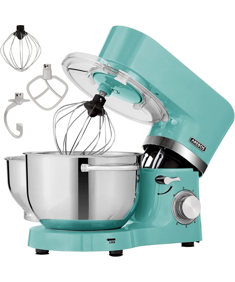Robot de Cuisine Multifonction 1500W avec Fouet, Batteur, Crochet, 2 Bols d'Acier Inoxydable, 6 Vitesses + Pulse, turquoise
