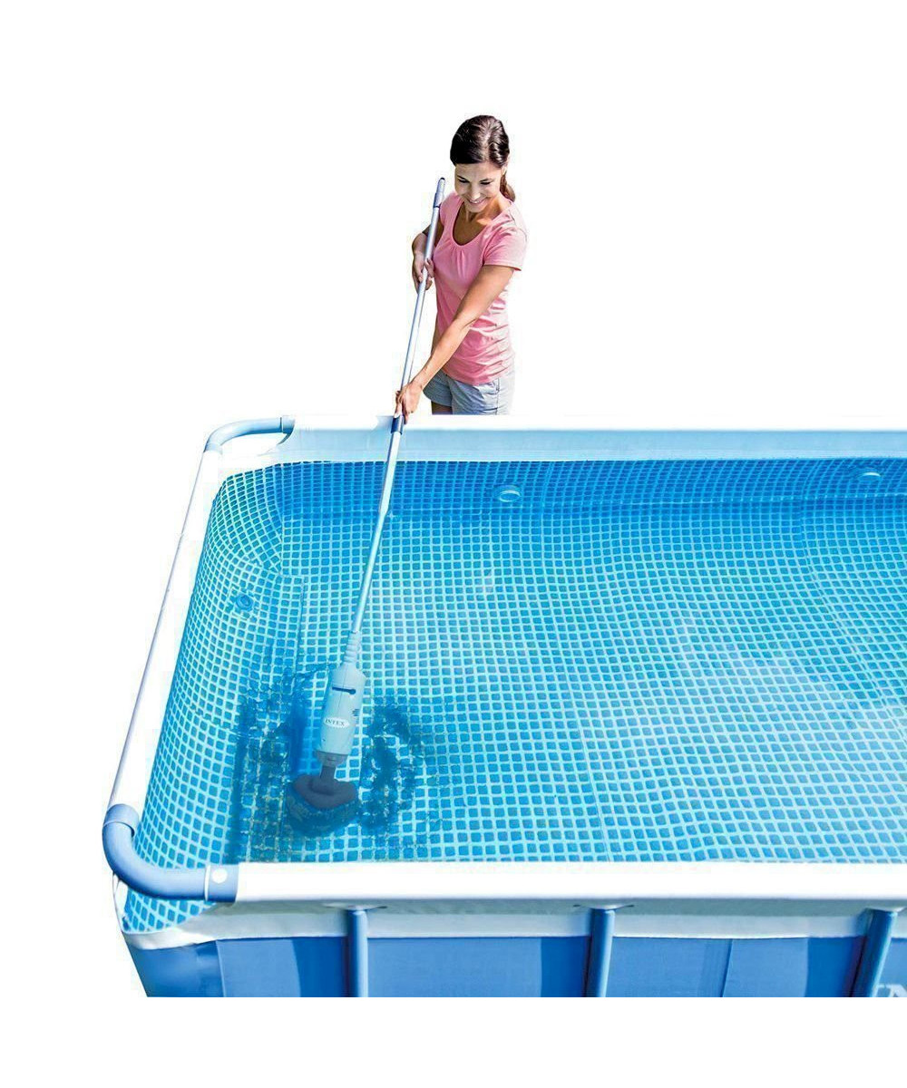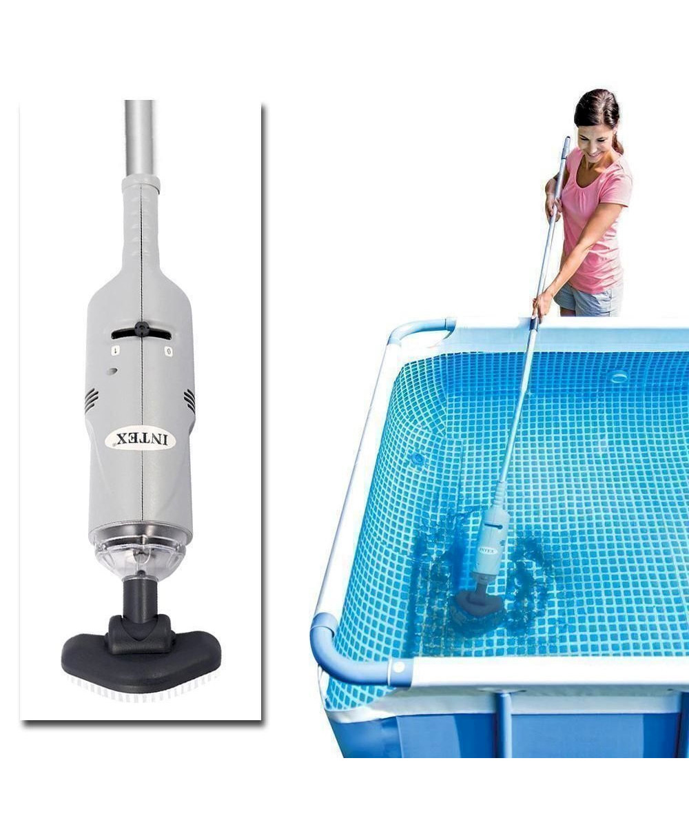 - Mit dem akkubetriebenen Handpoolsauger von INTEX halten Sie Whirlpools, kleine Schwimmbecken oder Planschbecken sauber. Mit der 239cm langen Teleskopstange erreichen Sie mühelos jede Ecke vom Schwimmbecken.