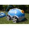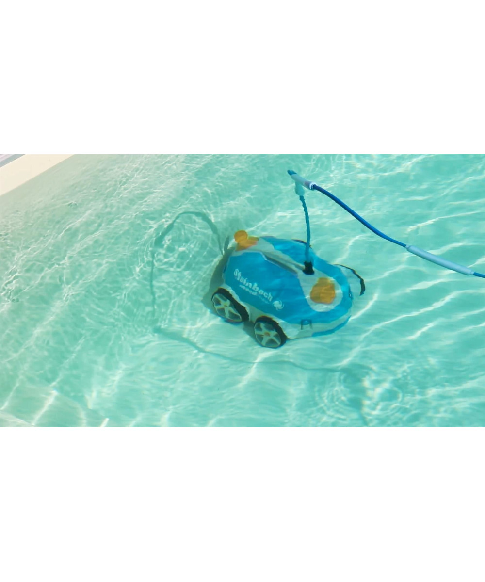 Aspirateur électrique entièrement automatique pour le nettoyage de toutes les piscines à fond plat. Une connexion au skimmer ou à un système de filtrage externe n'est pas nécessaire. Le robot est équipé d'un moteur 24 V CC avec entraînement à jet pour le nettoyage des surfaces de sol. Le contrôle s'effectue via une buse à l'avant ou à l'arrière. Le système de filtrage intégré dispose d'une pompe haute performance de 15.000 l / h. Le câble de raccordement entre l’unité de commande et l’aspirateur de sol a une longueur de 12 m. Le Speedcleaner Poolrunner peut être utilisé pour des piscines d’une taille maximale de 8 x 4 m.