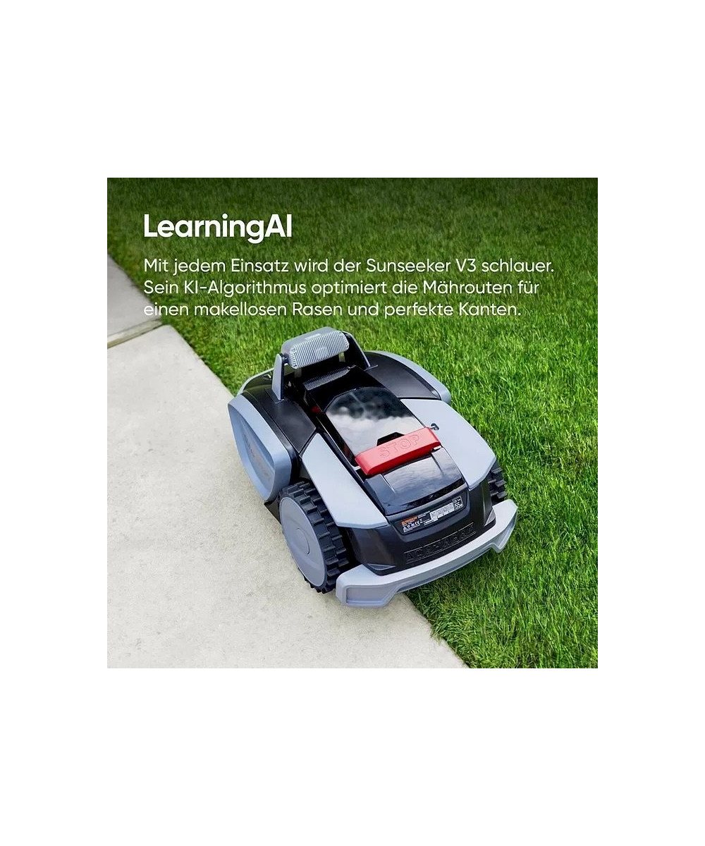 Sie wünschen einen perfekt gepflegten Rasen, haben aber keine Lust auf die zeitraubende Installation von Begrenzungskabeln oder Funkbaken? Der Sunseeker Mähroboter V3 Plus ist die smarte Lösung für strukturierte Rasenflächen bis zu 1000 m². Mit modernster Technologie wie Binokular-Kamera und Künstlicher Intelligenz sorgt er für ein makelloses Mähergebnis – und das mit minimalem Aufwand.