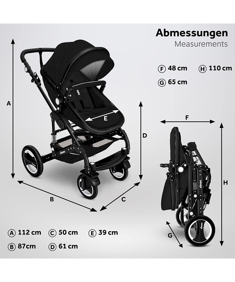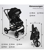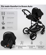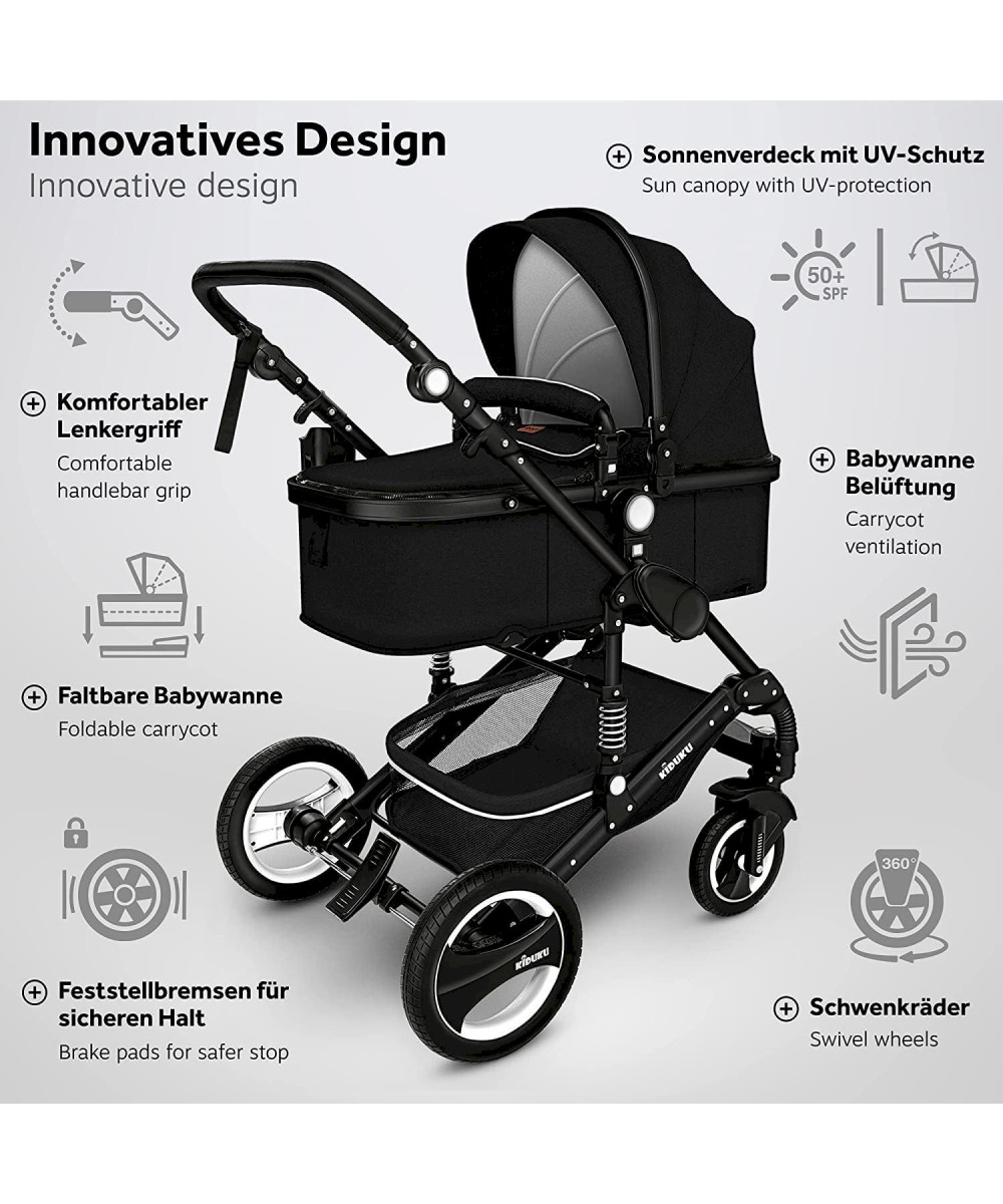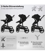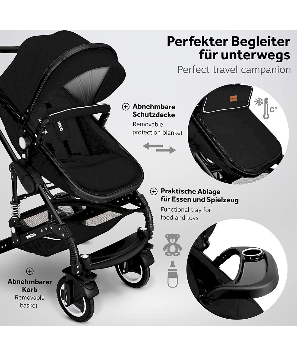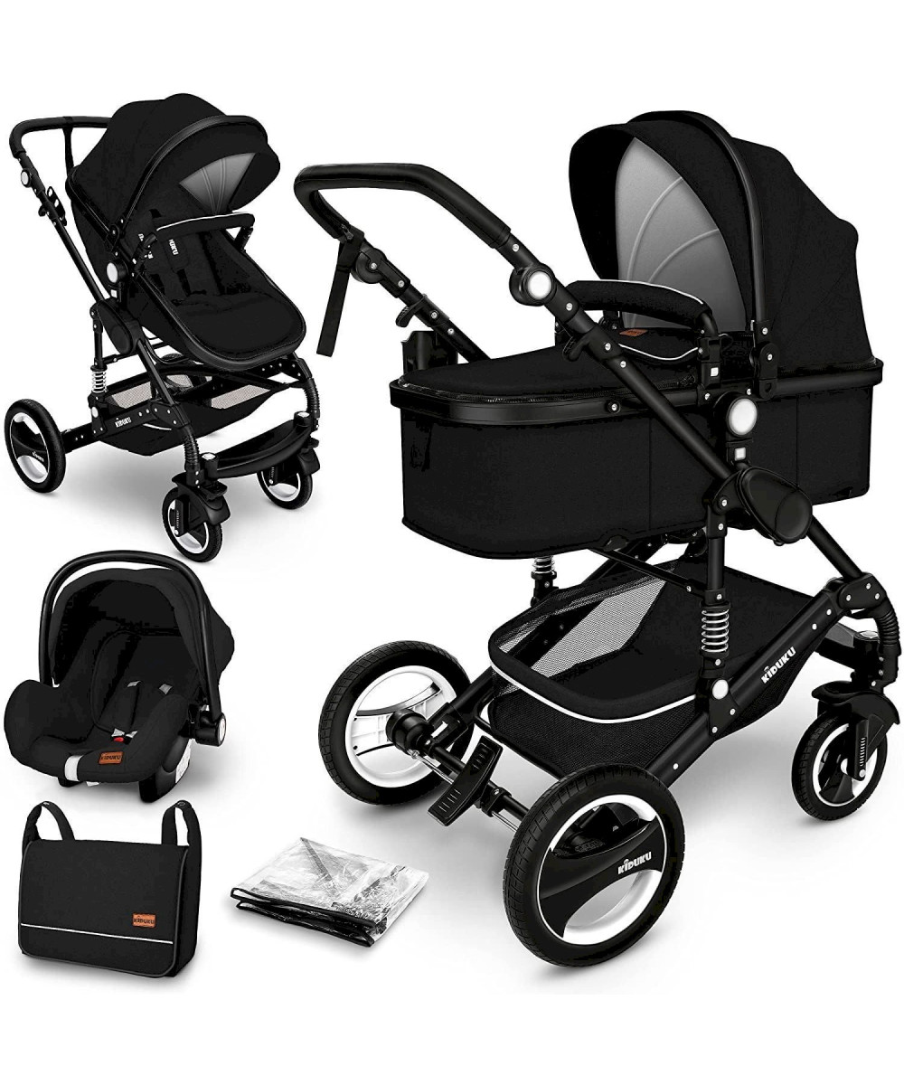 KIDUKU 3 en 1 Poussette pliable combinée avec set de voyage noir/noir