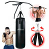 L'ensemble comprenant une barre de traction et un sac de frappe convient aux professionnels et aux débutants. Les utilisateurs de cet équipement sportif peuvent effectuer des séances d’entraînement complètes de divers groupes musculaires en utilisant ces deux outils.