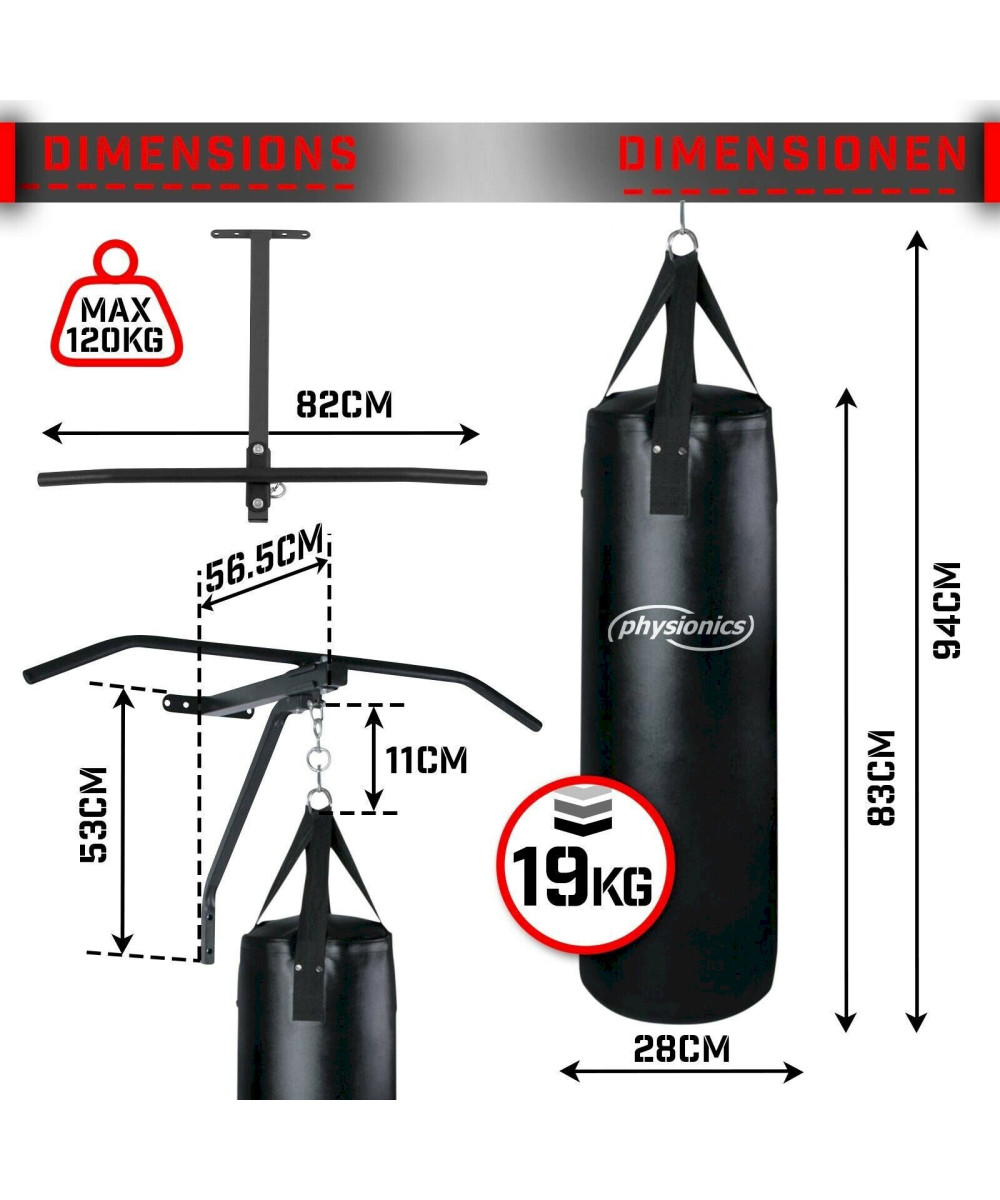 Physionics Sac de Frappe avec Barre de Traction
