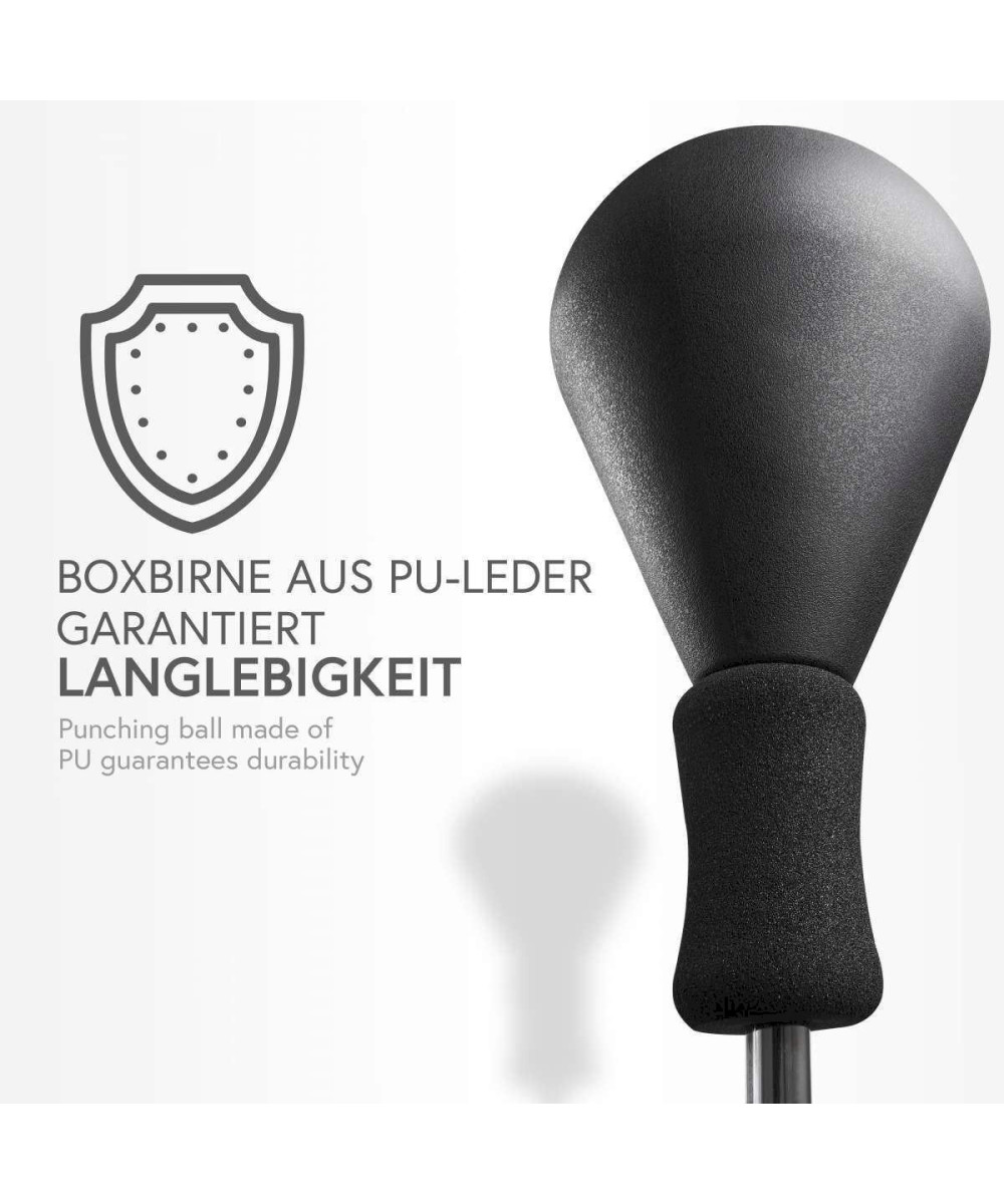 - Caractéristiques du produit: La balle de frappe est en cuir PU robuste et est reliée au pied par un ressort en acier, qui peut être rempli de sable ou d'eau. Cela lui donne une bonne stabilité. Il peut être ajusté d'environ 110 à 150 cm et convient donc également aux personnes de grande taille.