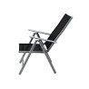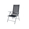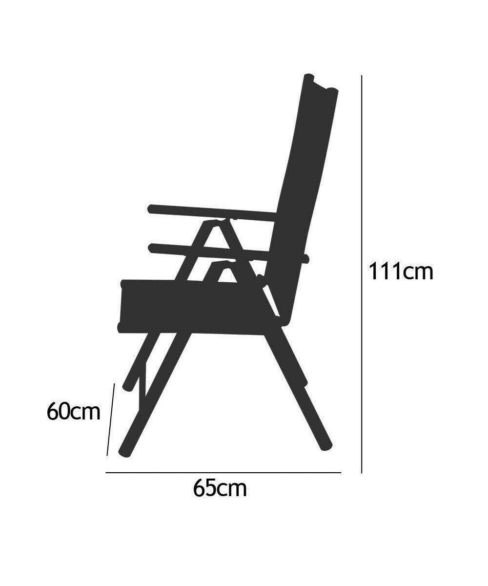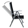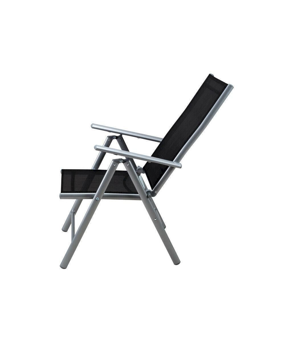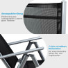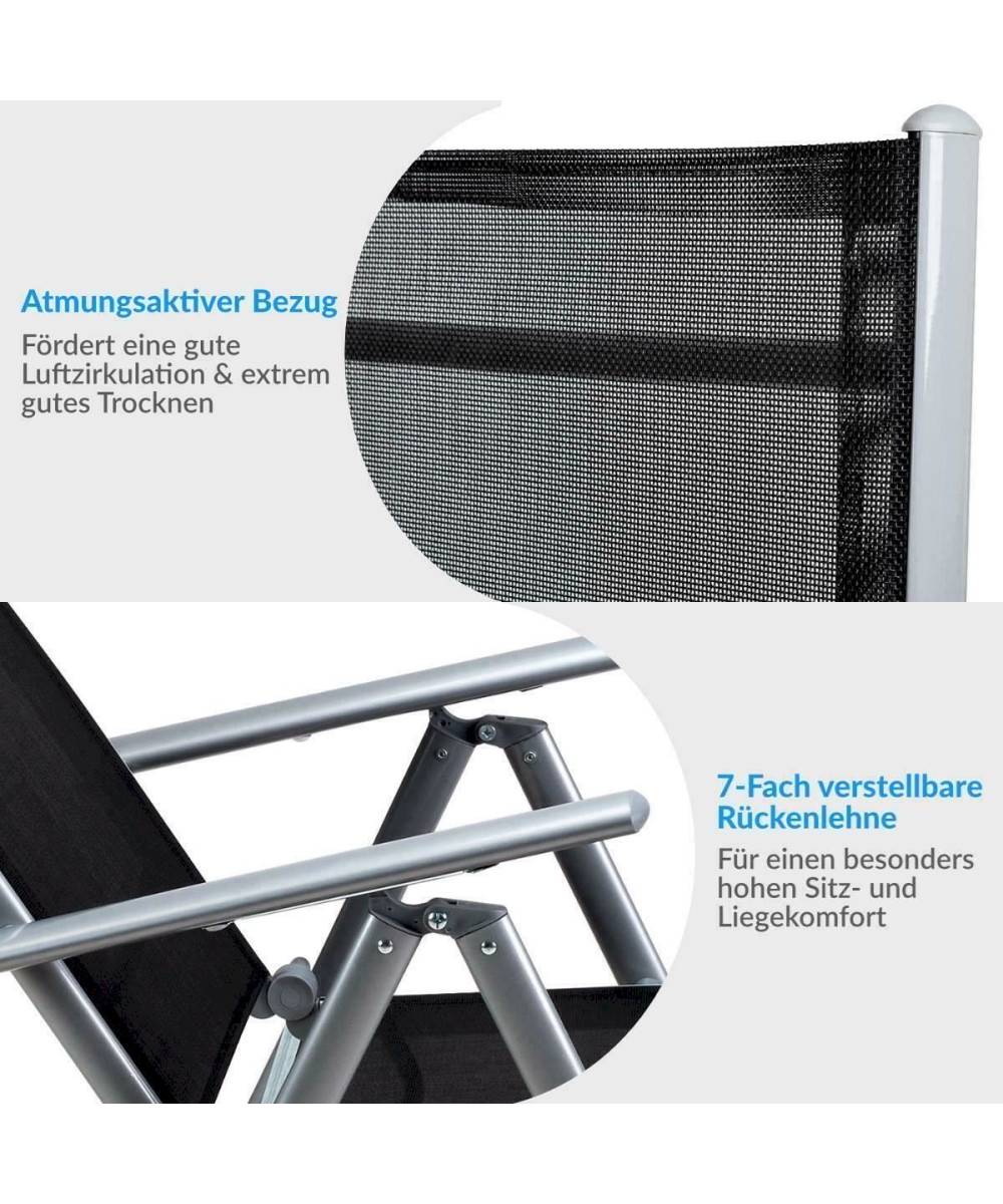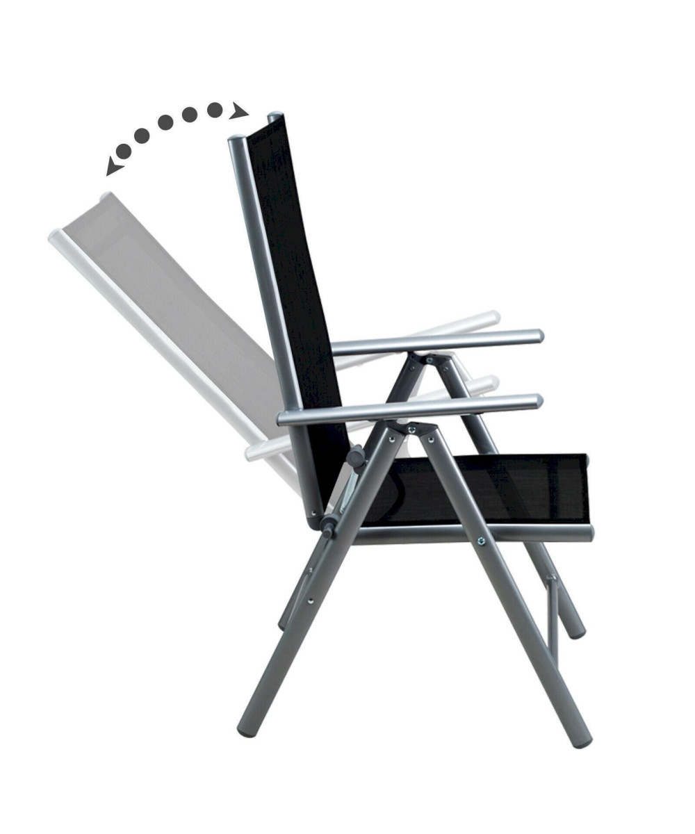 Diese elegante Aluminium-Sitzgruppe besteht aus 1 Tisch (150cm) und 6 klappbaren Hochlehnern mit verstellbaren Rückenlehnen.