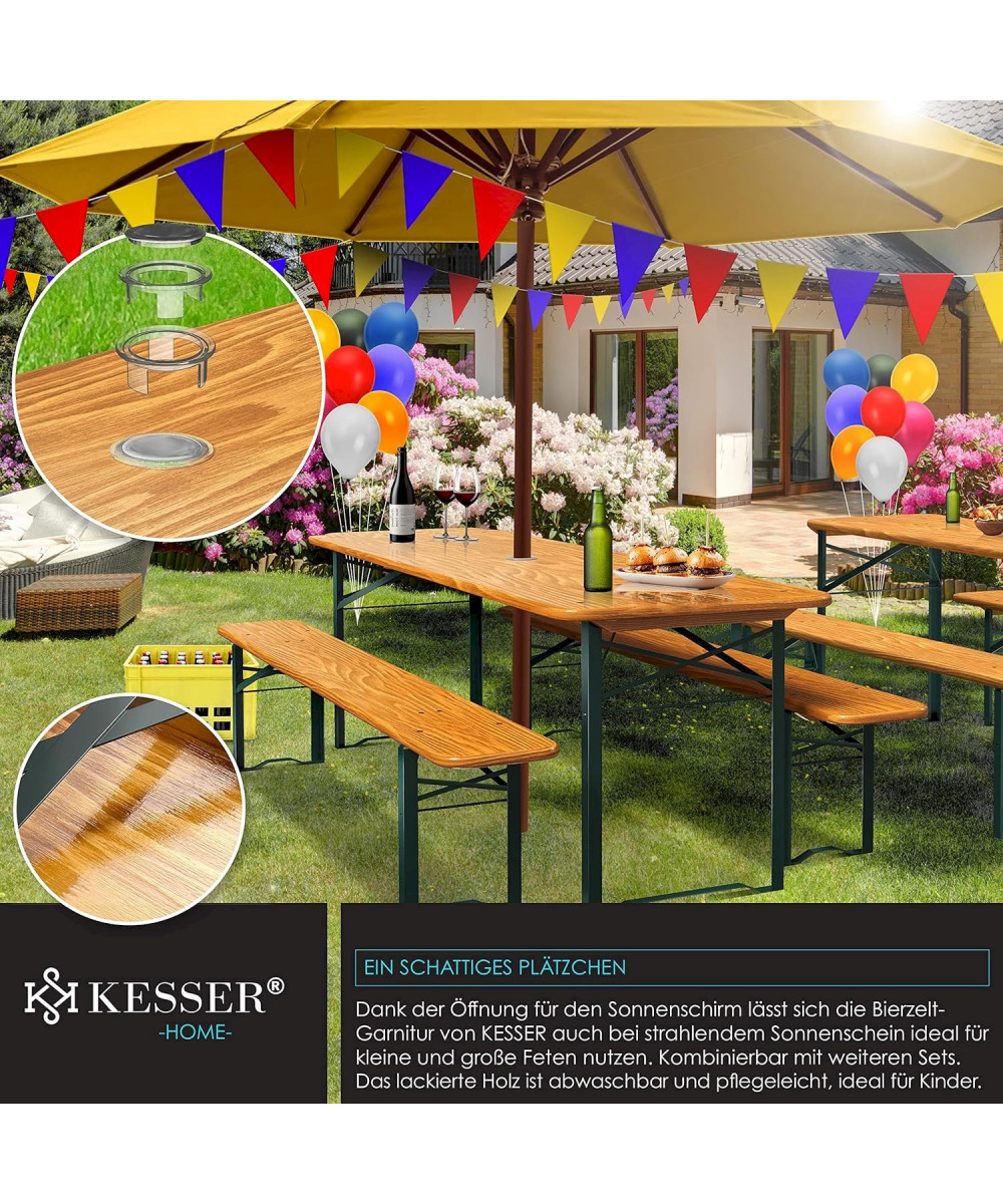 L'ensemble de brasserie KESSER est le choix parfait pour créer une atmosphère conviviale lors de tous types d'événements. Que ce soit pour un anniversaire, un barbecue ou une fête, la robuste garniture de brasserie de KESSER invite à s'asseoir ensemble en toute décontraction. La livraison comprend une table de brasserie, un set de 12 protections de sol et 2 bancs. L'ensemble de brasserie KESSER est une solution robuste et durable pour s'asseoir confortablement en toute occasion.