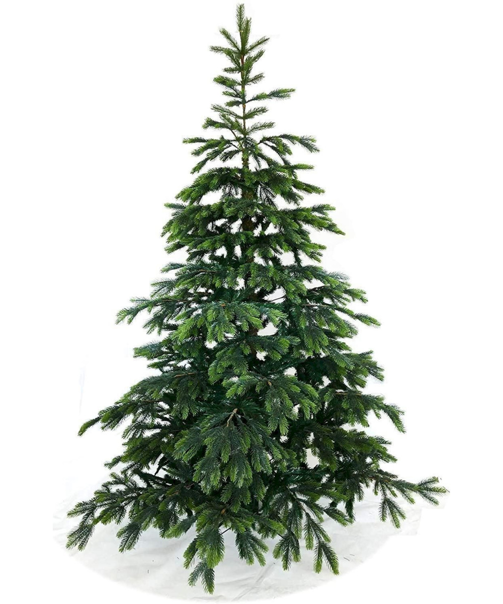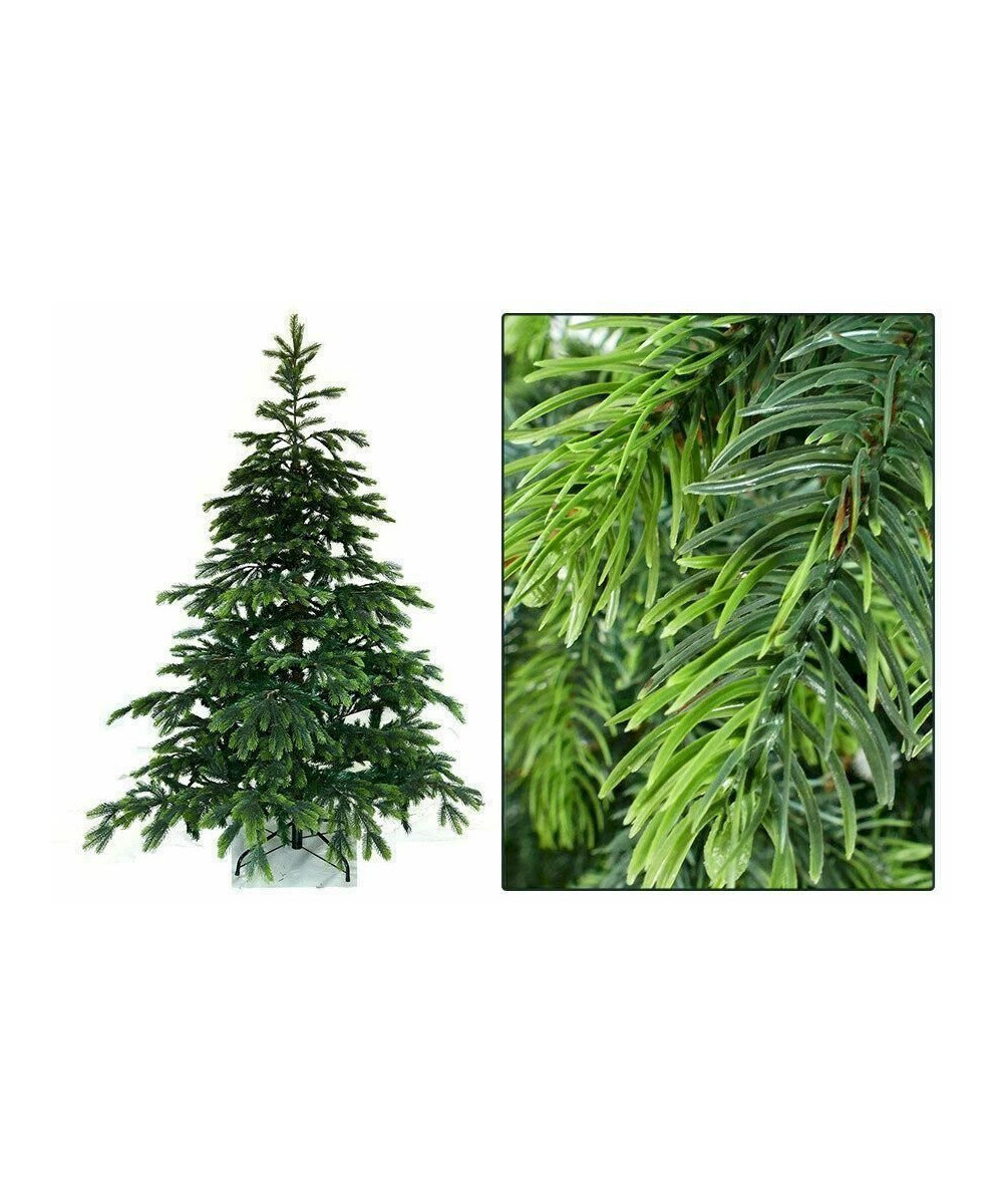 Magnifique arbre de Noël artificiel épicéa vert de 210 cm de hauteur. Les aiguilles des branches visibles de devant sont en PE de qualité, d'une longue durée de vie, et les aiguilles des branches de derrière en PVC. Le jeu de couleurs des pointes allant du vert foncé à un vert plus clair lui confère une note naturelle et contribue à créer un effet très réaliste. Les branches sont revêtues d'une ficelle de couleur marron.