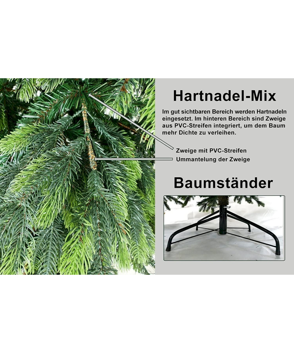 - Mélange réussi de PE et PVC: les aiguilles des branches visibles de devant sont en PE de qualité et les aiguilles des branches de derrière en PVC