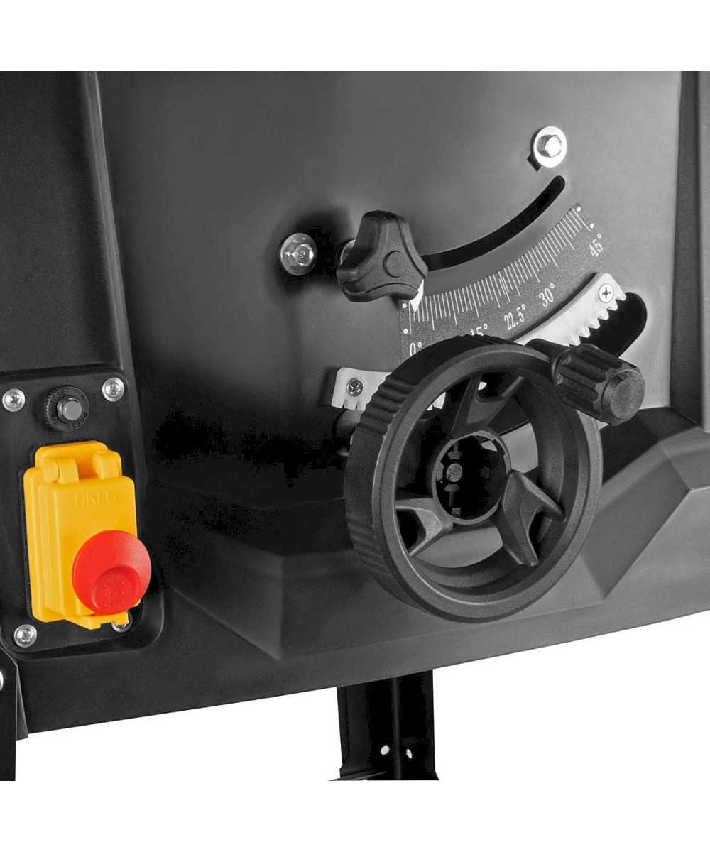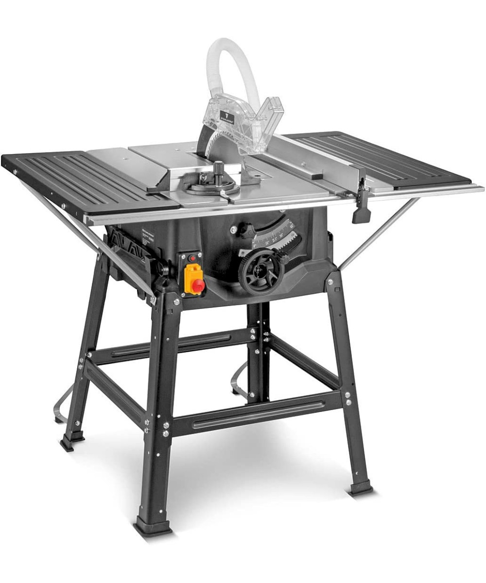 - La scie circulaire de table est livrée avec une lame de précision de 254 mm en carbure de tungstène, qui convient pour la coupe de bois massif, de panneaux de fibres de bois et autres. La protection de la lame garantit un travail en toute sécurité.