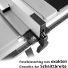 - La butée parallèle, qui peut être montée des deux côtés, permet de régler avec précision la largeur de coupe.