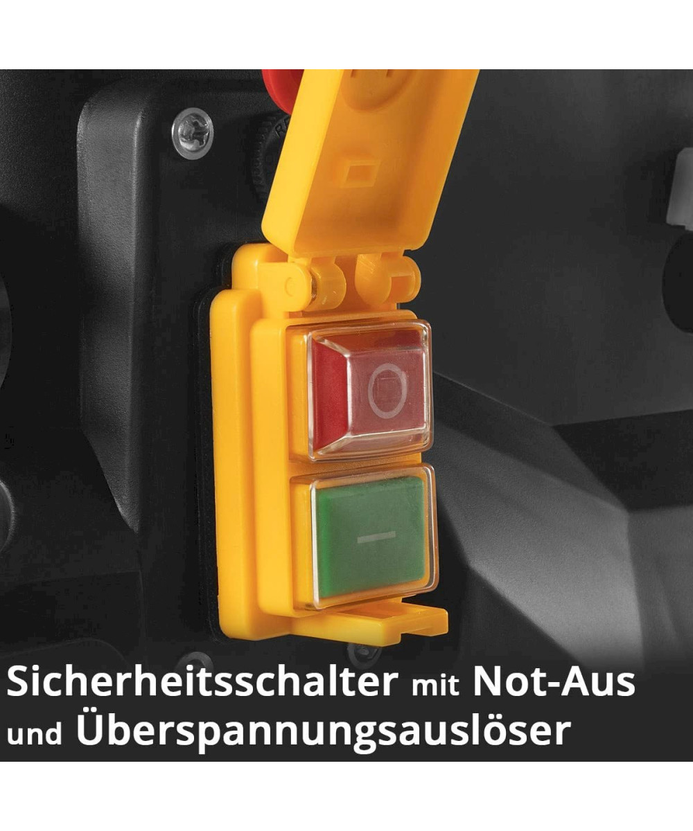 - Pour éviter tout accident lors de l'utilisation de la scie, celle-ci est équipée d'un interrupteur de sécurité avec arrêt d'urgence et d'une sortie de surtension.