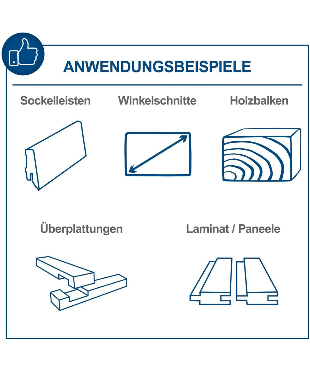 - Lame carbure à 48 dents pour des coupes transversales et de biais précises, sans éclats dans les bois massifs. La 2ème lame de scie à 60 dents vient compléter l‘équipement de cette scie
