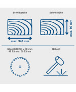 - Largeur/hauteur de coupe 45° / 90° 340 x 46 mm