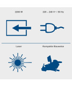 - Laser intégré matérialisant précisément le trait de coupe