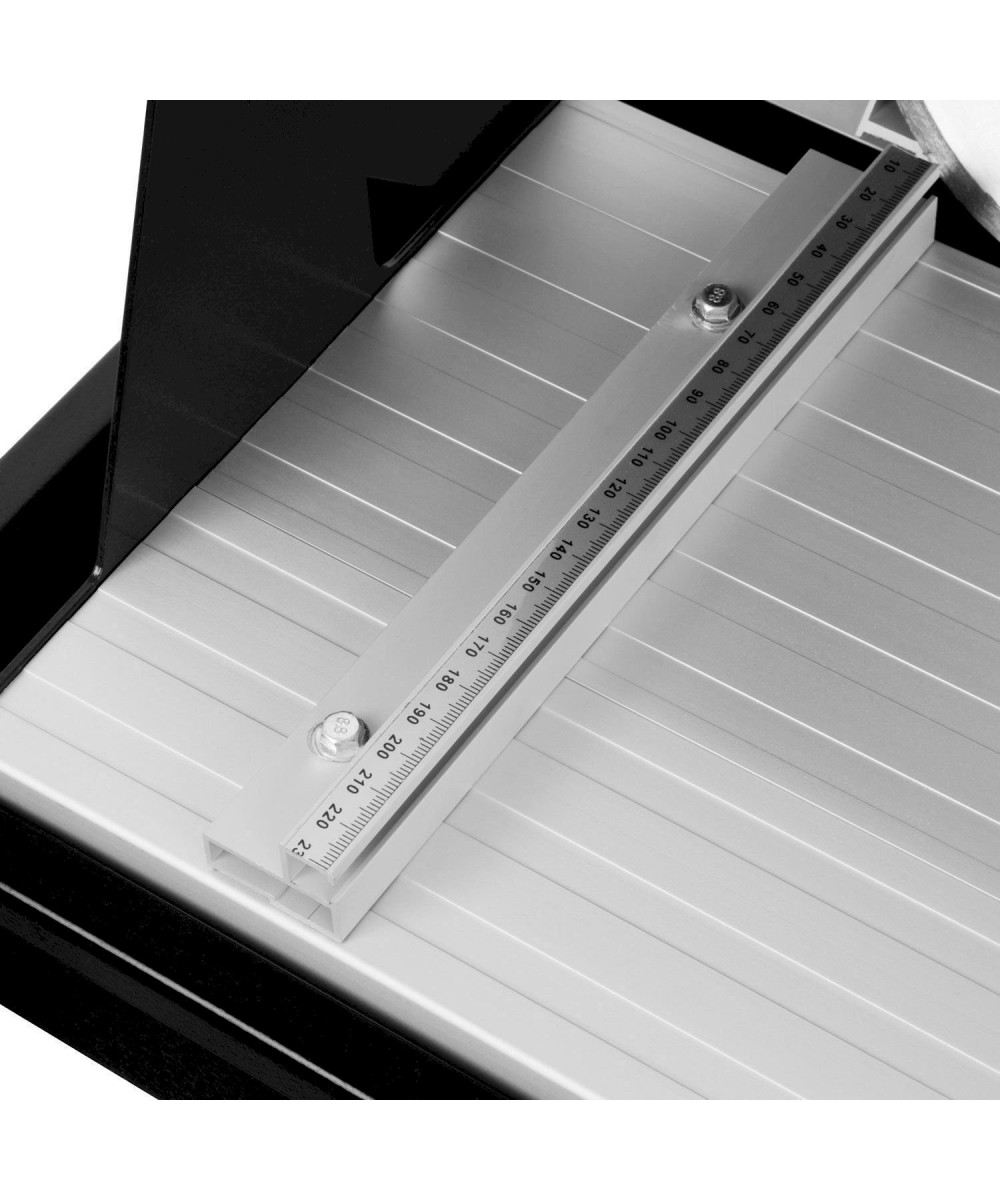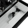 La table très stable avec 4 pieds anti-dérapants offre une surface de travail sécurisée et confortable . Avec son dispositif parallèle , les découpes de longueurs et d´onglets exactes ne posent aucun problème. La tête moteur est inclinable en continu jusqu´à 45° pour les découpes en biais. L´appareil dispose également d´un laser optique pour vous aider à travailler avec précision . La plaque séparatrice de diamant se déplace dans son bain d´eau et évite ainsi la dispersion de poussières lors de la découpe.