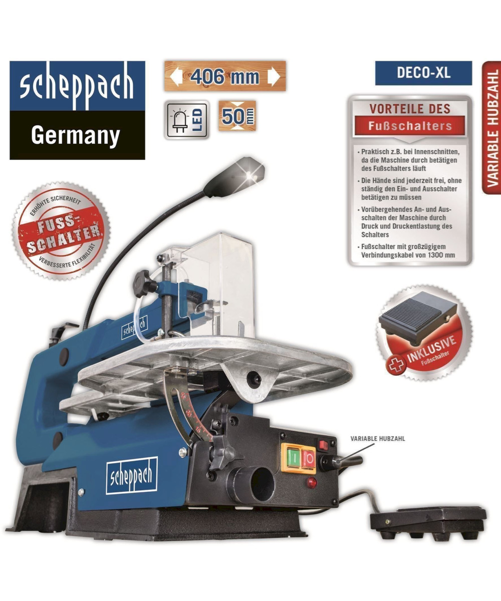 Scheppach DECO-XL Scie à chantourner avec interrupteur à pédale - 125W