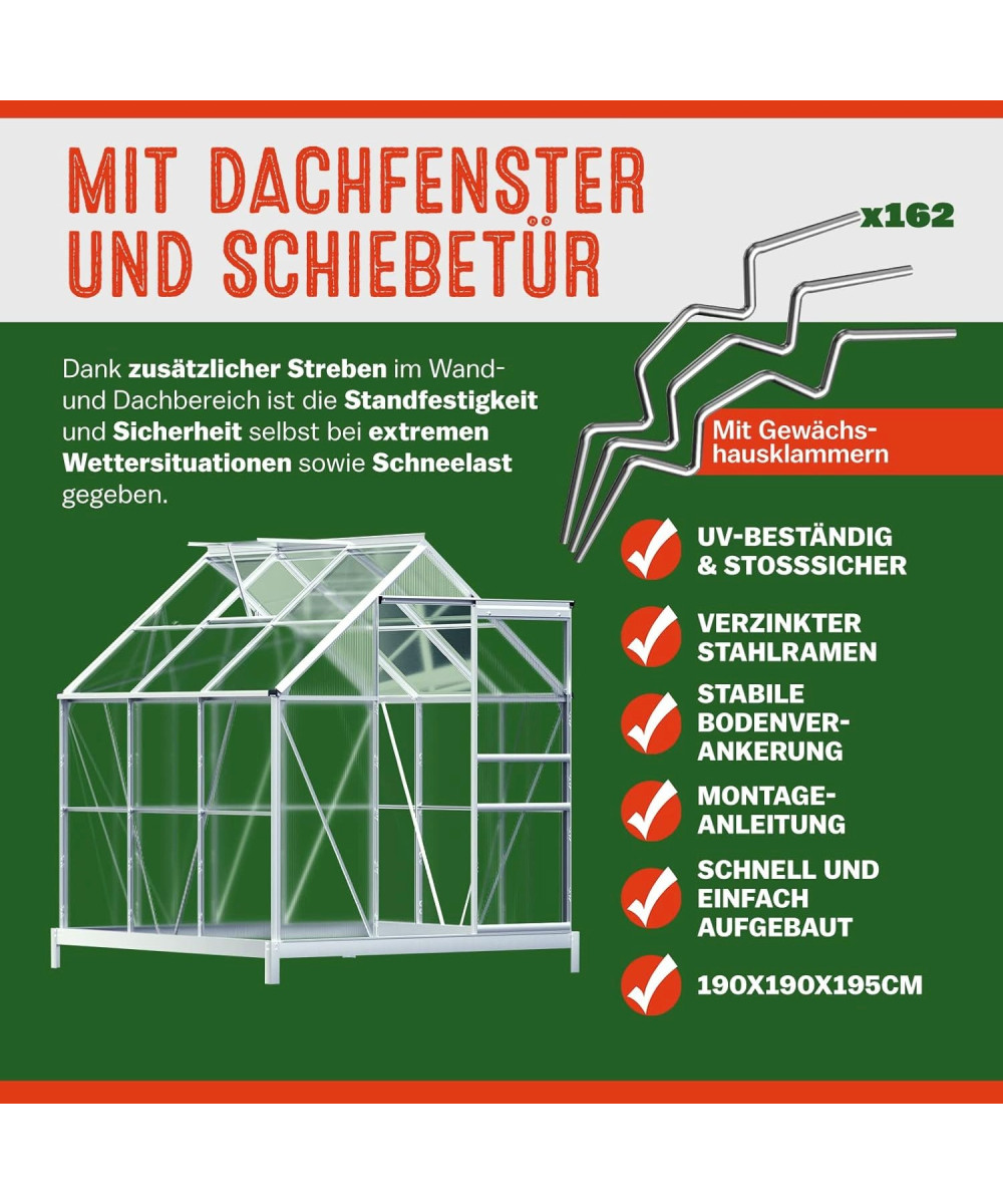 - Adapté pour les serres de 190 cm x 190 cm
