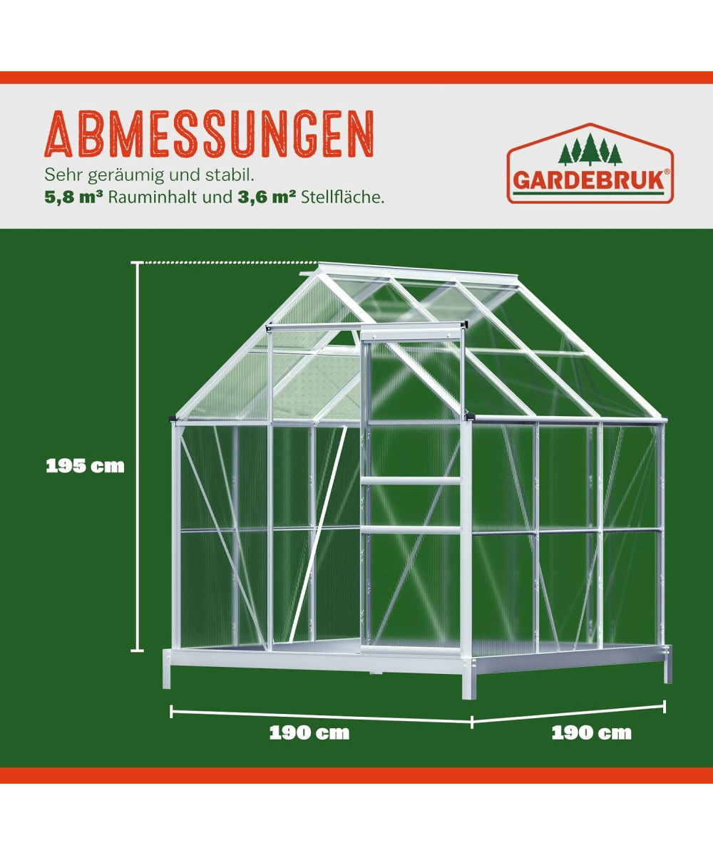 Gardebruk Serre de jardin en aluminium 190x190x195cm avec fondation