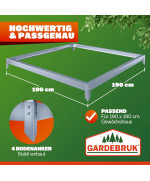 La fondation adaptée en acier zingué 190 x 190 cm - pour une excellente stabilité :