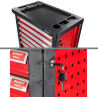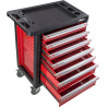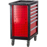 Servante d'atelier en métal avec 7 rails haut de gamme recouvert par pulvérisation, poignée, en plus grandes possibilités de rangement, fermeture centrale et extension totale. Idéal pour les artisans ambitieux et professionnel. Complète mobilité grâce aux roues en caoutchouc.
