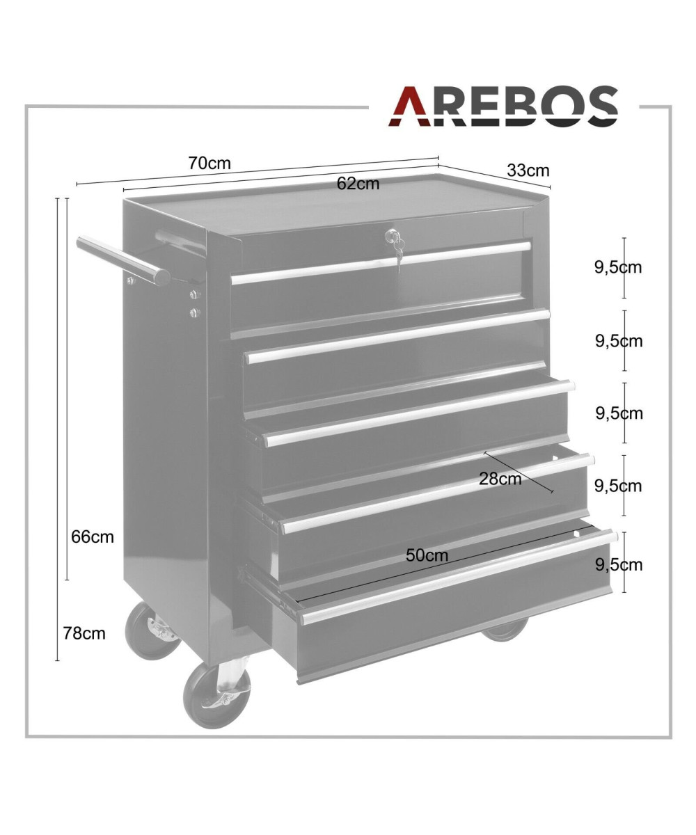 - Notre chariot d'atelier AREBOS est équipé d'un total de 5 tiroirs