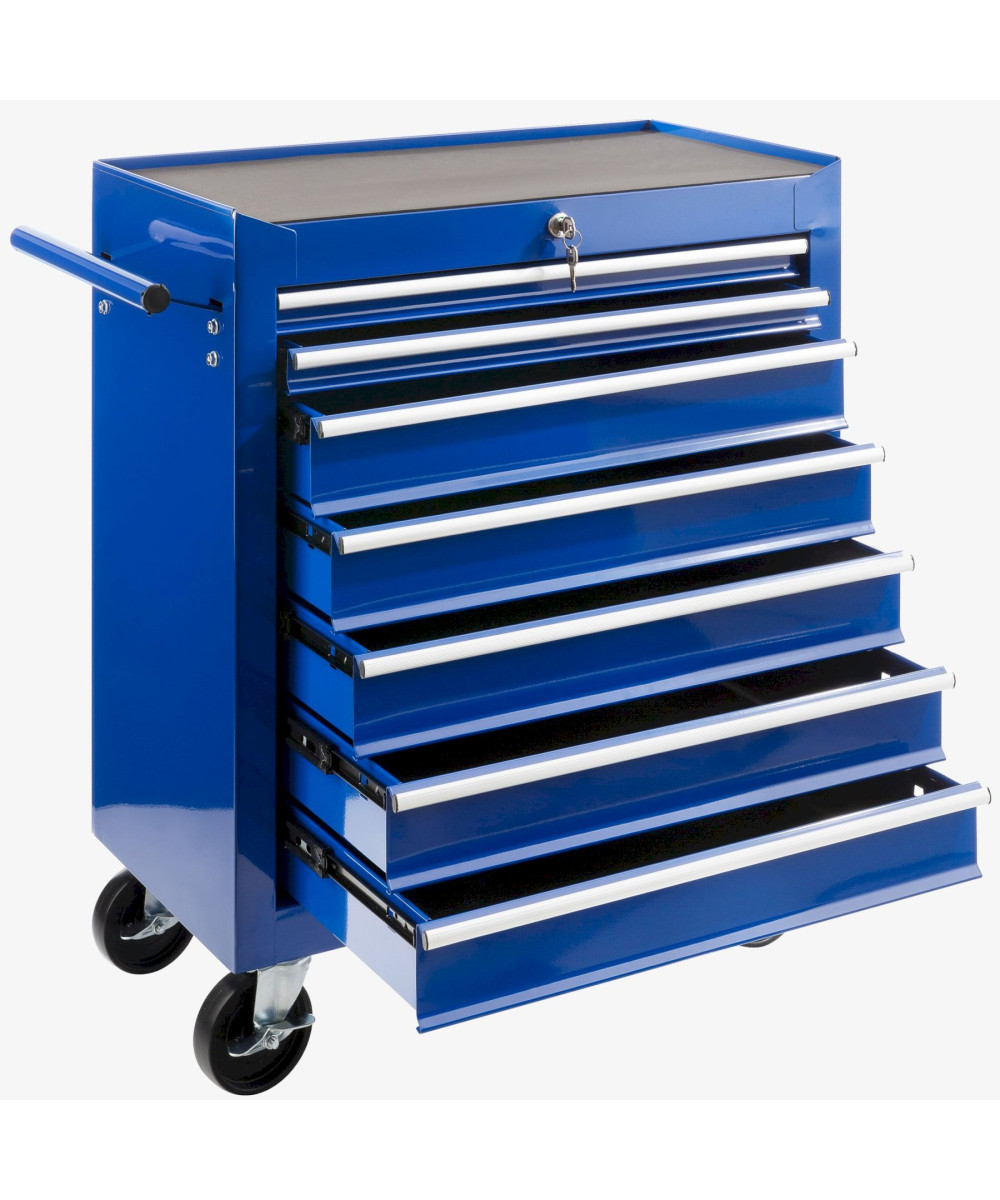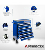 Arebos chariot à outils 7 compartiments verrouillables bleu