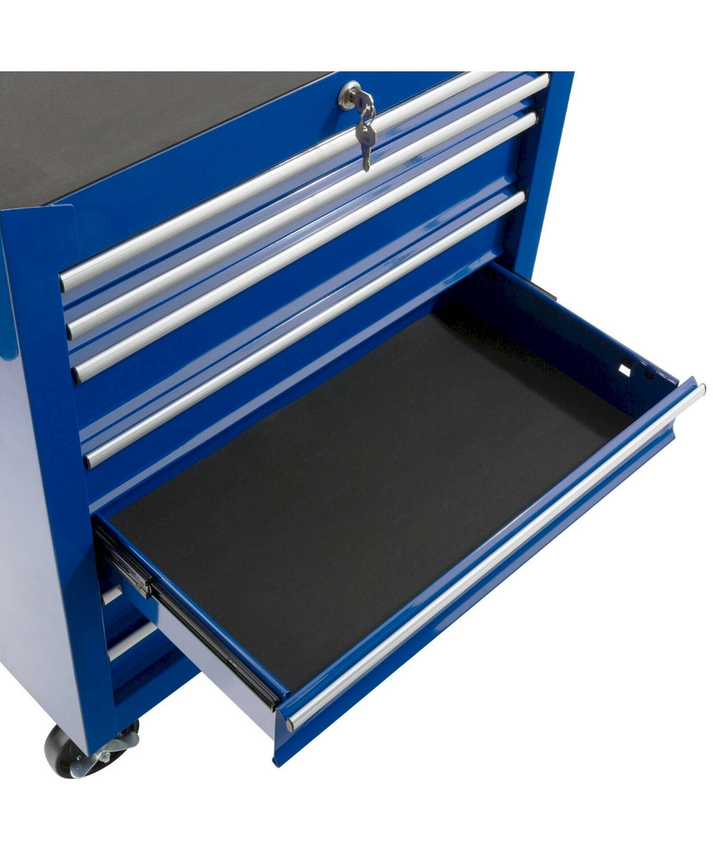 Les tiroirs à roulement à billes permettent une ouverture et une fermeture en douceur des tiroirs. De plus, les grands tiroirs avec tapis antidérapants offrent suffisamment d'espace pour tous vos équipements et gardent tous les outils à leur place. - Quatre roues pivotantes, deux freins de stationnement et une poignée de poussée