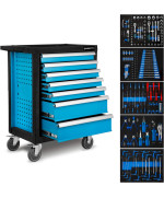 7 TIROIRS, DONT 5 SONT ÉQUIPÉS D'OUTILS: Les tiroirs sont équipés de rails télescopiques à roulement à billes, chaque tiroir peut supporter une charge maximale de 45 kg. Vous recevrez cinq inserts en mousse avec des outils de qualité. Vous trouverez ci-dessous la liste exacte des outils.