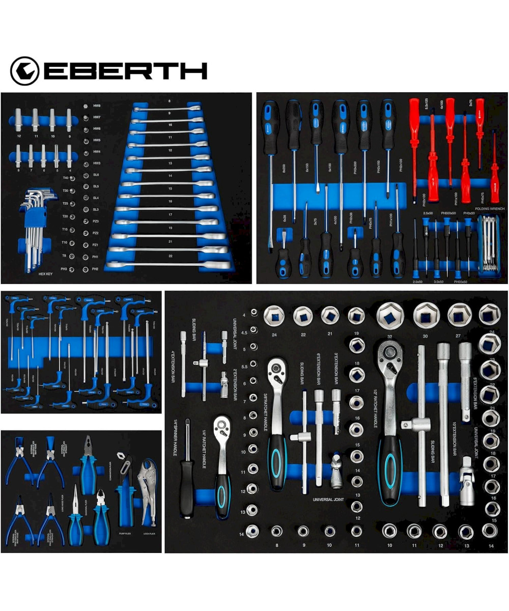 MATÉRIAU DE HAUTE QUALITÉ, CONSTRUCTION ROBUSTE: La servante d'atelier en acier EBERTH est à double paroi et équipée de 167 pièces d'outils. L'outillage est extrêmement robuste, car il est fabriqué en acier chrome-vanadium durable.