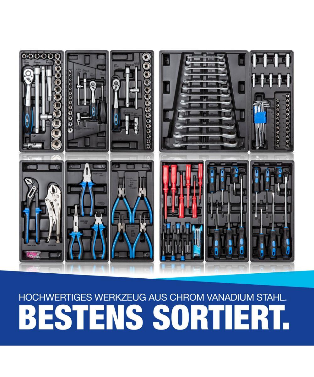 Werkzeugwagen Werkstattwagen Rollwagen Komplett mit Werkzeug (220 Teile)