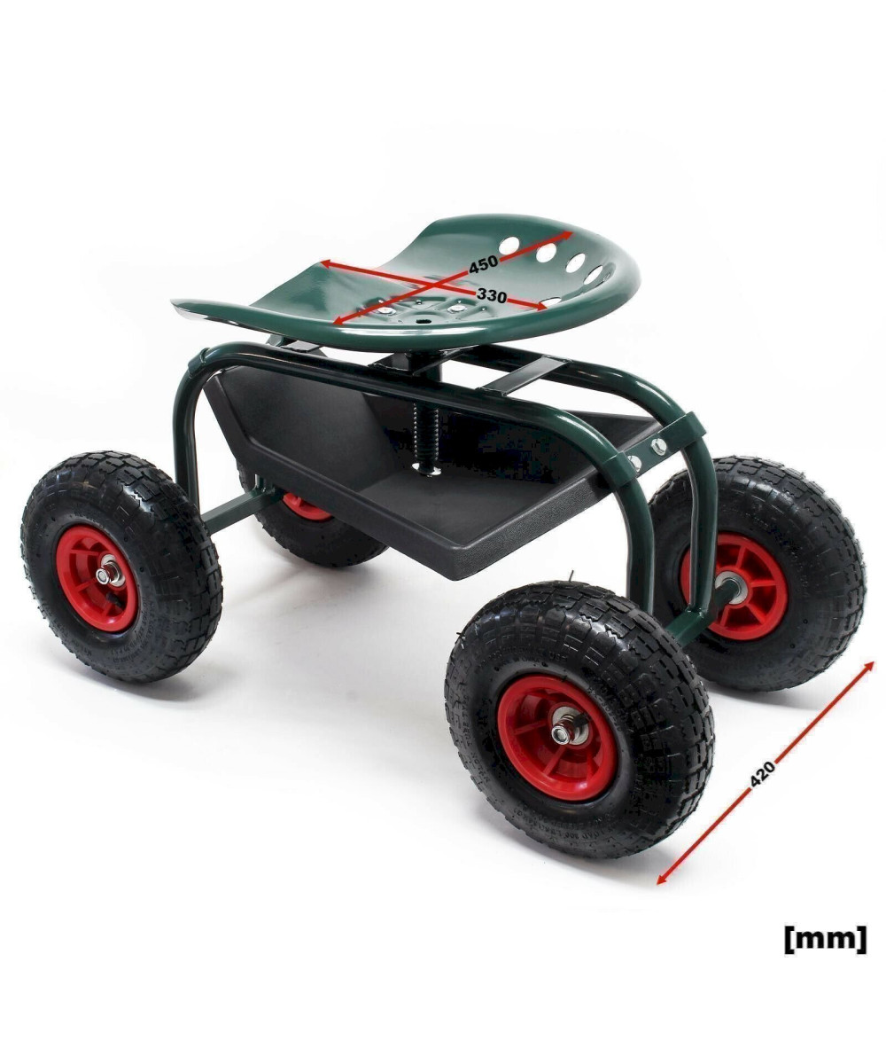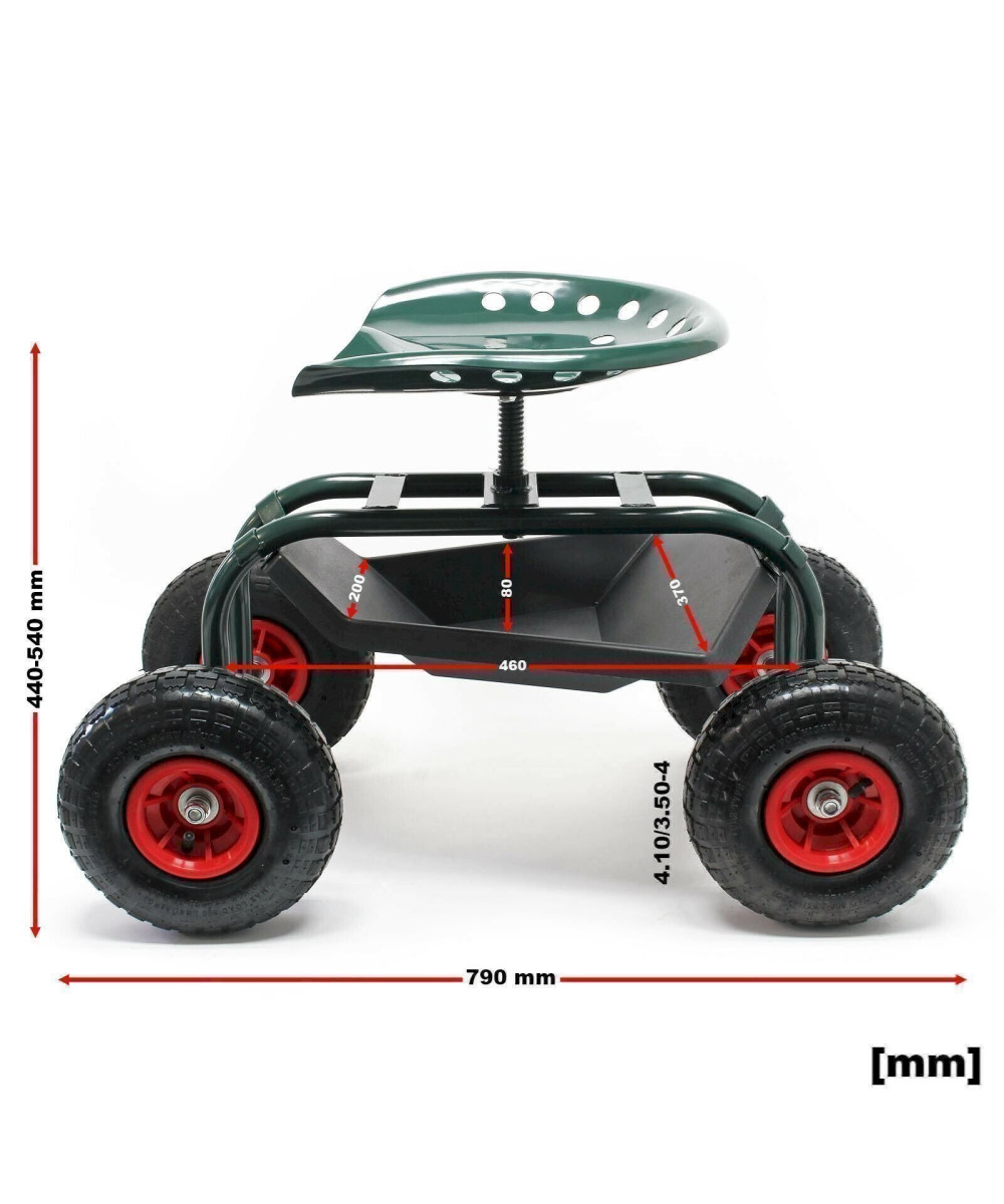 Le siège sur roues est fabriqué en fer solide et caoutchouc durable ce qui lui confère une stabilité supplémentaire. Très facile à transporter en raison de sa taille compacte ainsi que son poids léger.