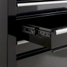 Le chariot d'atelier AREBOS est fabriqué en tôle d'acier robuste. Dans les tiroirs coulissants, vous pouvez trier votre outil de manière optimale. Ils ont une fonction snap-in de sorte qu'ils ne s'ouvrent pas par eux-mêmes. Des tapis antidérapants garantissent que l'outil reste en place.