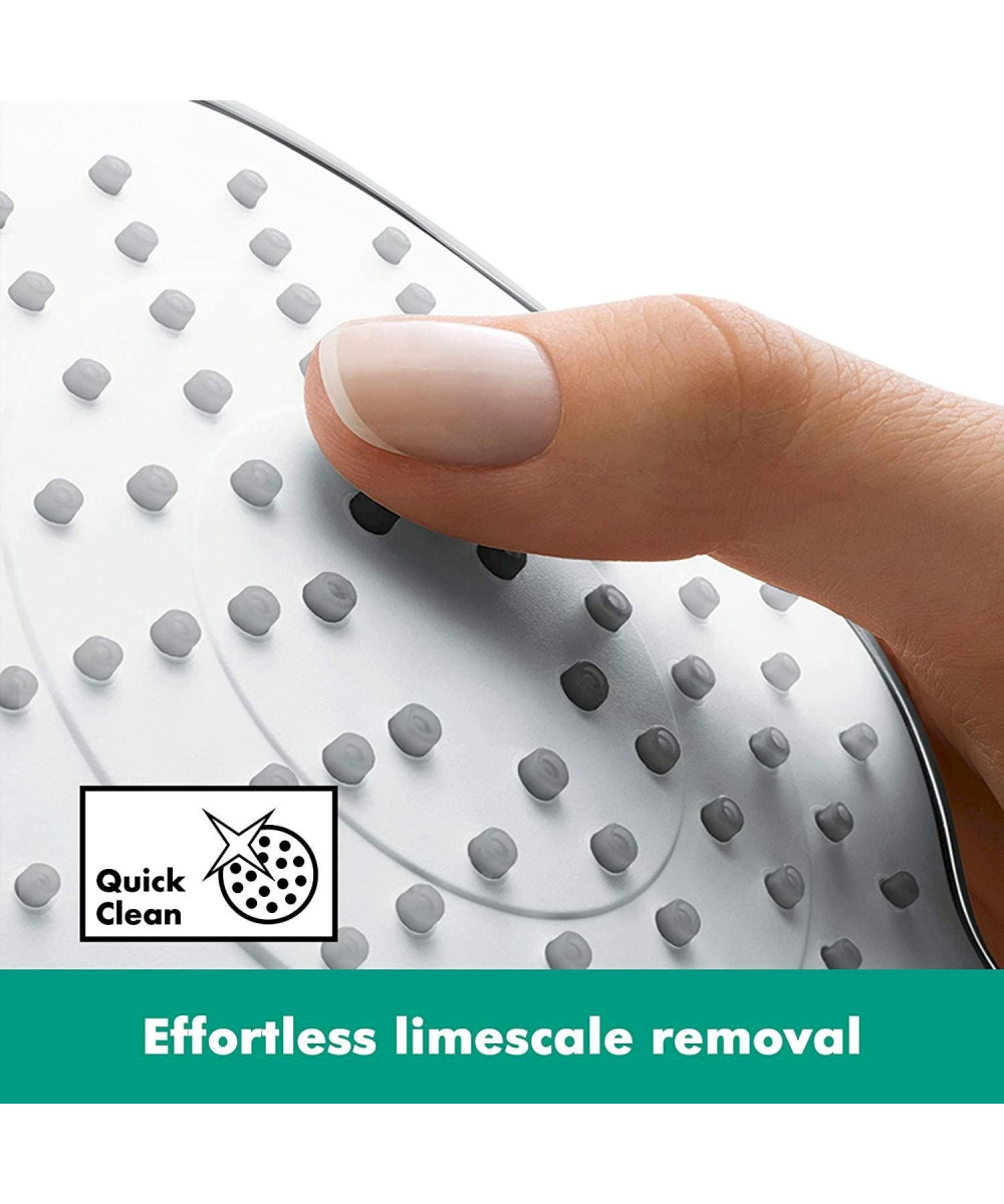 Qui aime nettoyer ? Avec QuickClean, les dépôts calcaires et la saleté sur les mitigeurs et les douches hansgrohe disparaissent en un instant. Il suffit de frotter les picots en silicone souple.