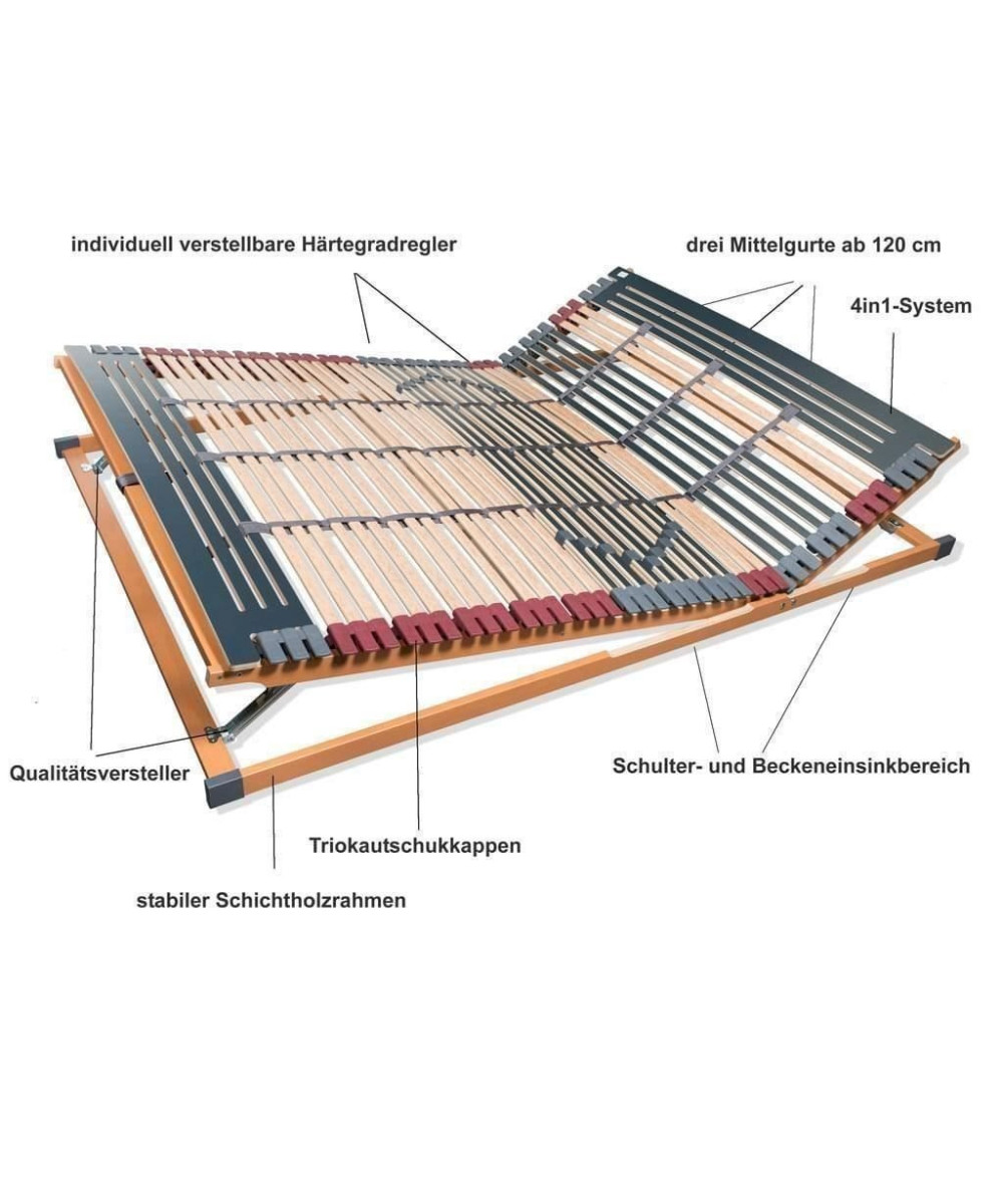 FMP Rhodos KF Sommier à lattes 7 zones – Tête et pied de lit réglables 44 lattes - 1 40x200cm