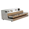 Il est important de faire la distinction entre cette machine sous vide et les nombreuses machines sur le marché qui semblent réalisées en acier inox mais qui sont en réalité en plastique, avec l’ajout d’un vernis en acier inox.