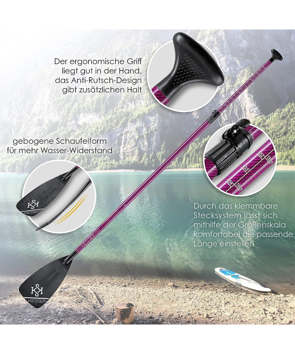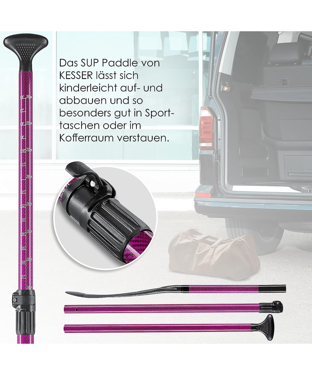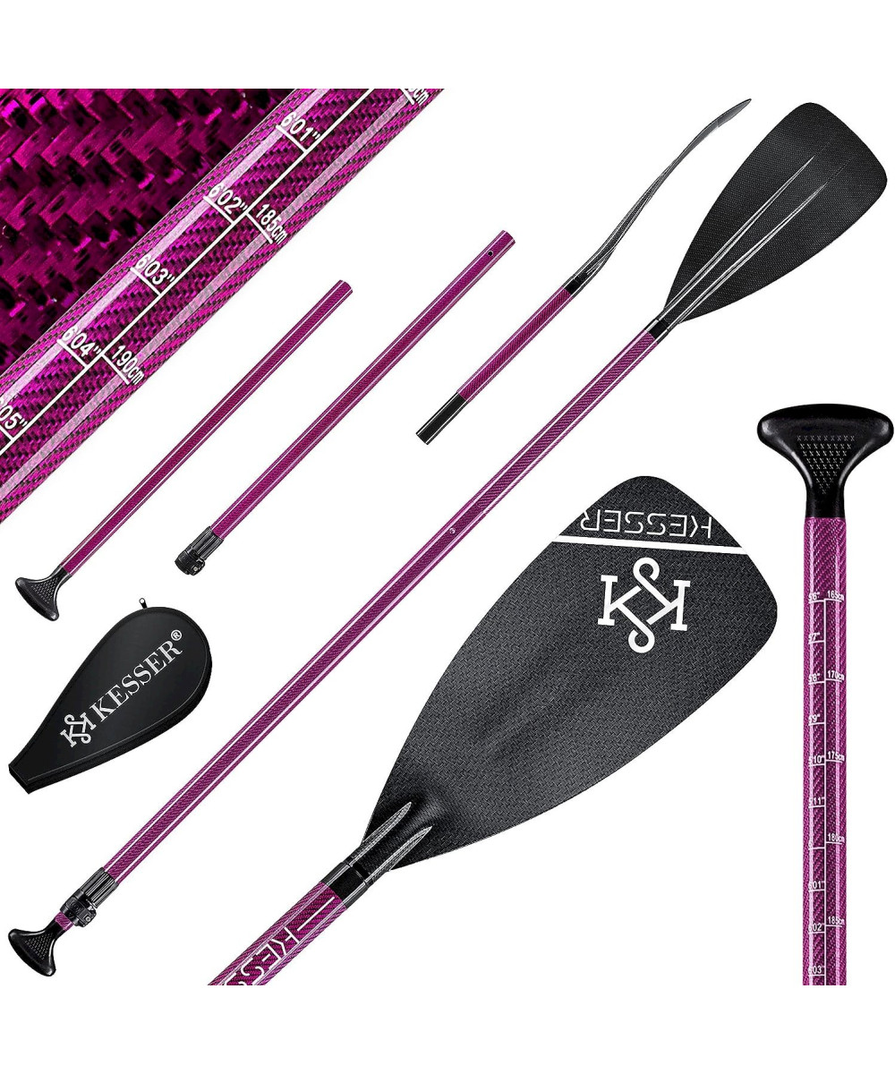 KESSER Paddel Carbon Professional Speed 3 Parties pour Planche de Kayak Sup Stand-Up Paddling Pink