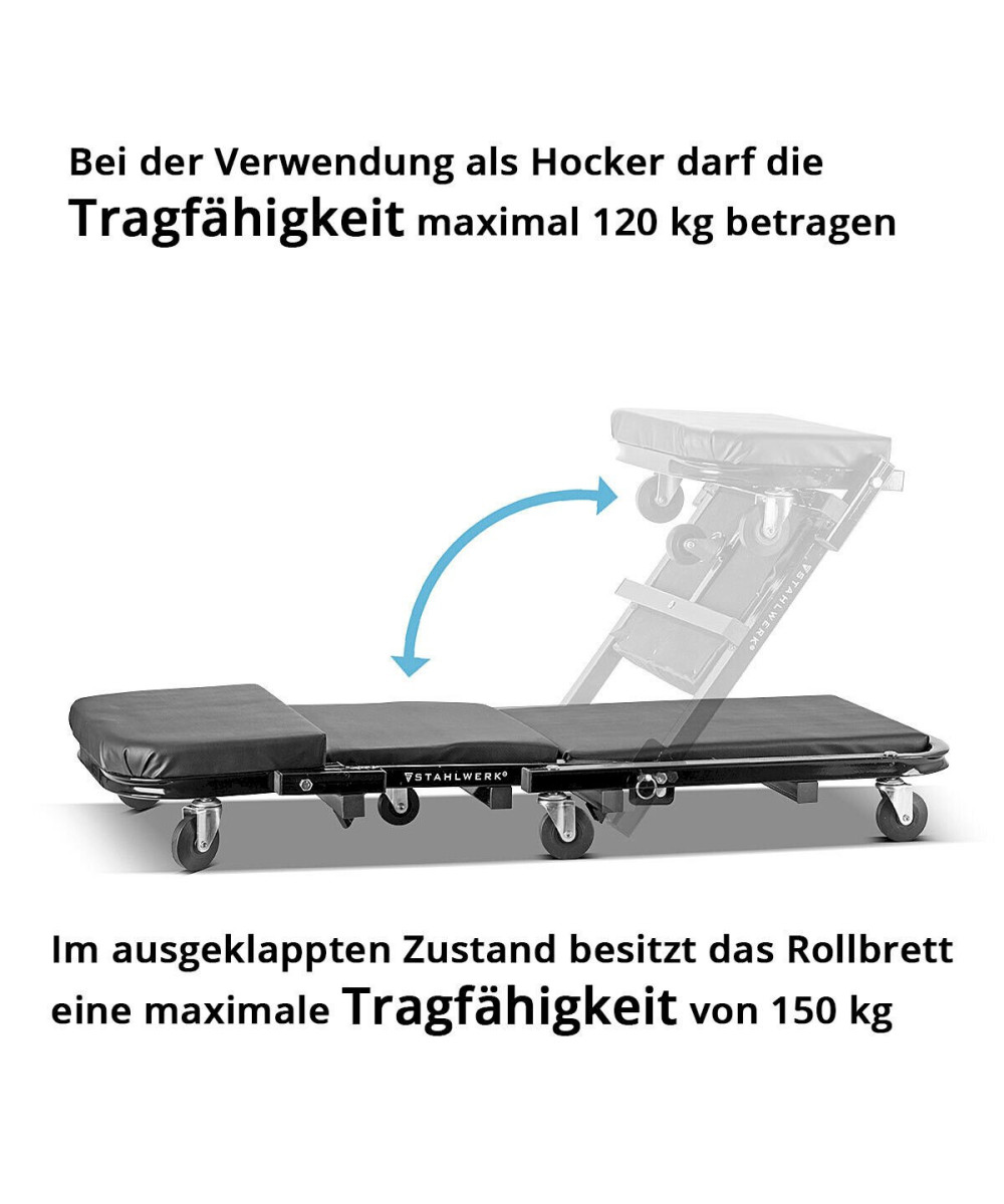 - Le tabouret d'atelier 2 en 1 de STAHLWERK, d'une grande flexibilité d'utilisation, est une aide indispensable dans chaque atelier.