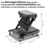 - La planche à roulettes de montage se replie en un tour de main pour devenir un tabouret de montage confortable, facilitant ainsi le travail en position assise.
