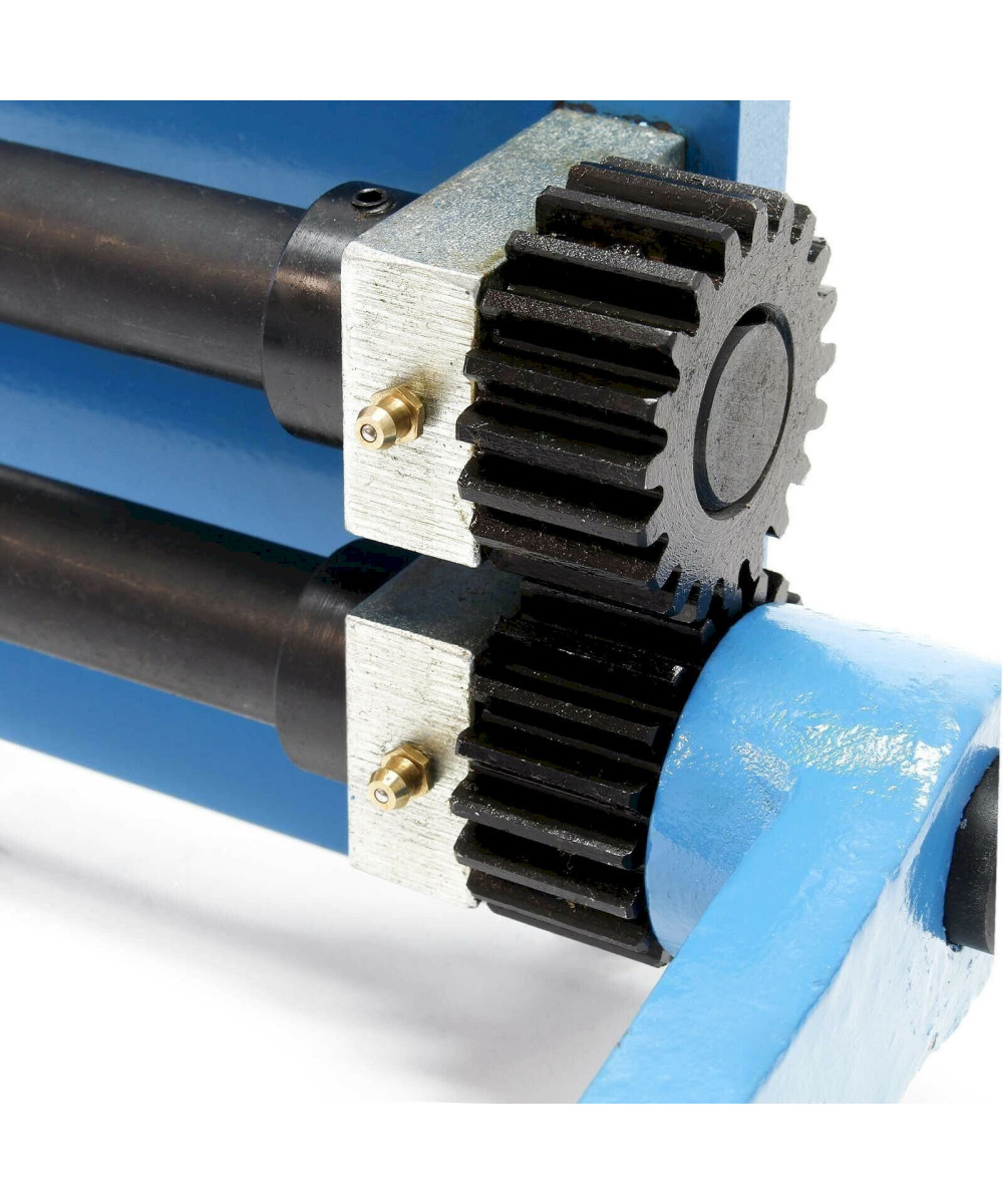 La construction stable confère à la cintreuse durabilité et robustesse. Les arbres coulissent dans des roulements coulissants avec des graisseurs, de sorte qu'un fonctionnement sans heurts soit possible. Les six rouleaux sont munis de rainures de rangement en fil métallique qui permettent un travail de rainure précis. La profondeur d’insertion maximale de la tôle est de 440 mm. La cintreuse à rouleaux s’actionne manuellement via une manivelle et vous offre un contrôle maximal lors du traitement des tôles.